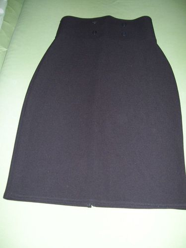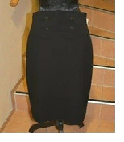 Sie schauen sich hier einen gebrauchten aber gut erhaltenen Bleistiftrock an von Belsira in Gr. L. Er hat einen hohen breiten Bund in der Mitte spitz und 4 Dekoknöpfe. Er wird hinten mit Zippergeschlossen. Material: 80% Polyester 20% Elasthan. Es folgen die ca. Abmessungen im ungestretchtem Zustand