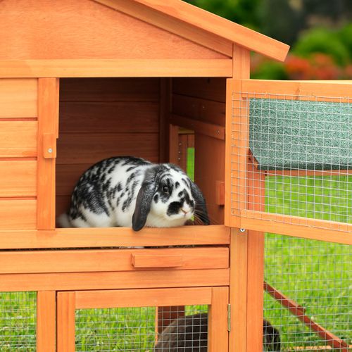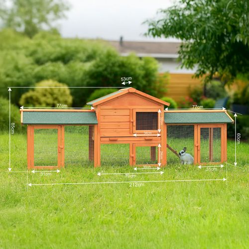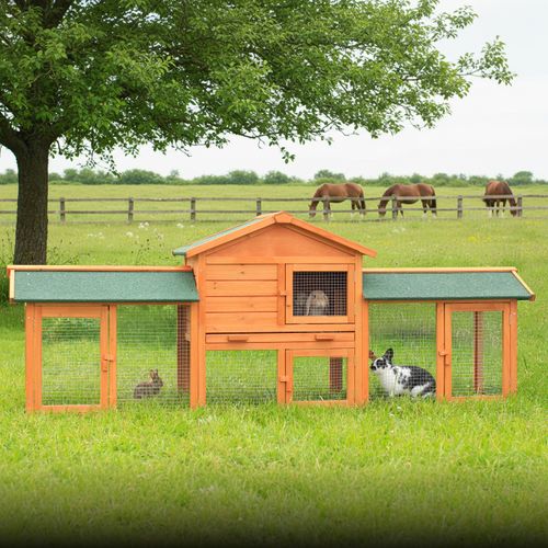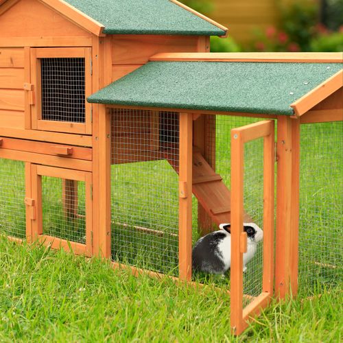 belviona Kaninchenstall aus Holz auf zwei Etagen mit Rampe, 212x52x85 cm