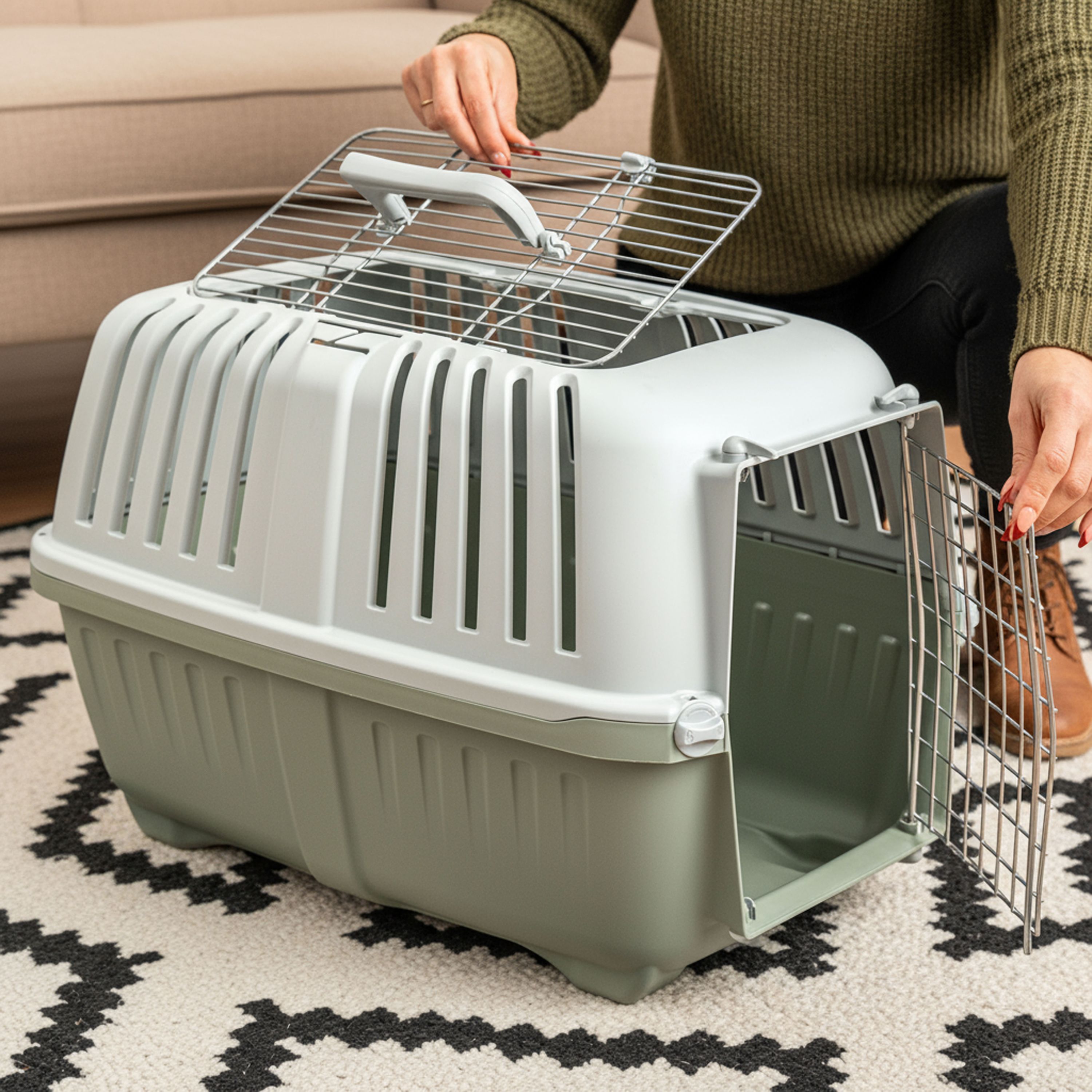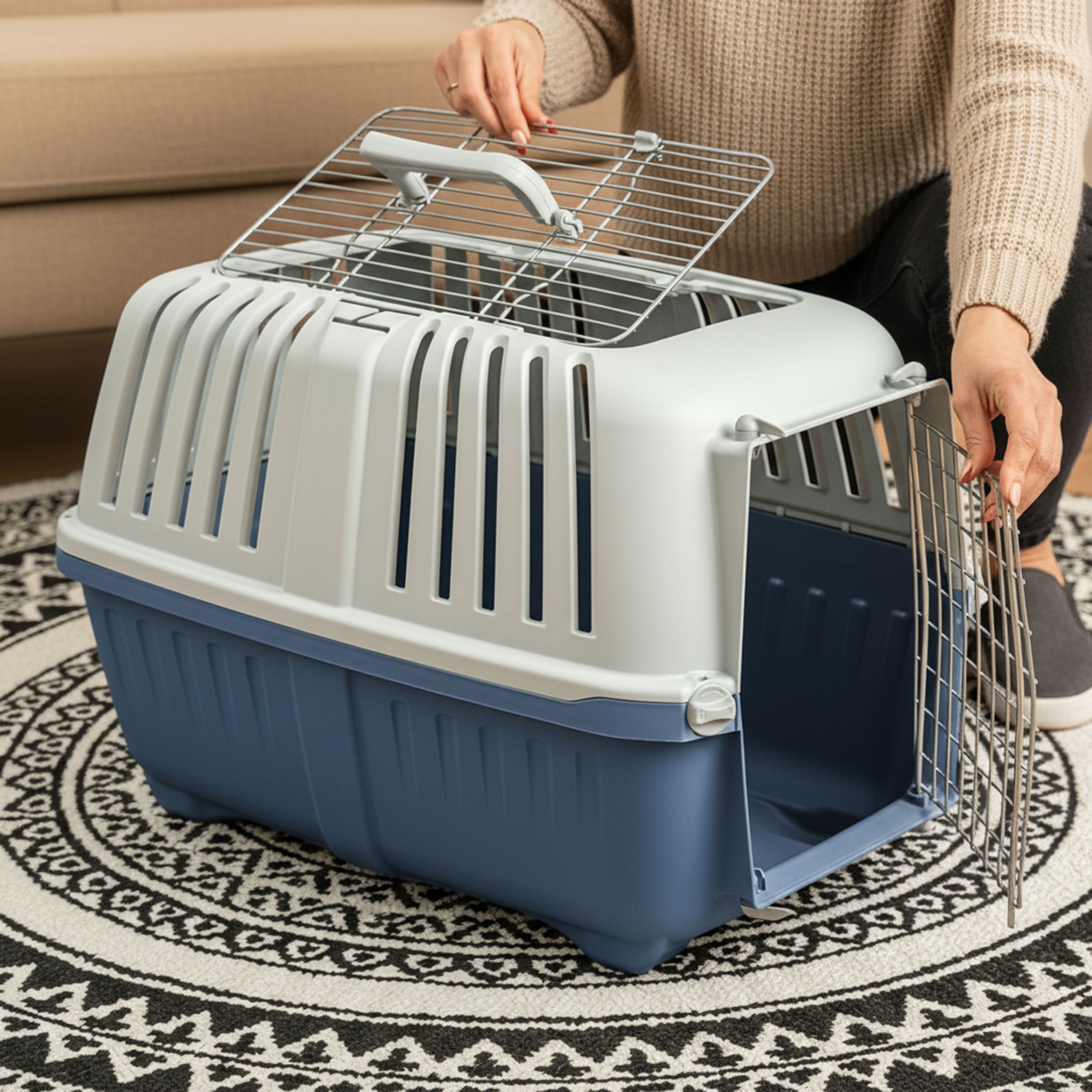 belviona Katzentransportbox aus Kunststoff mit Metalltür und -öffnung, verschieden
