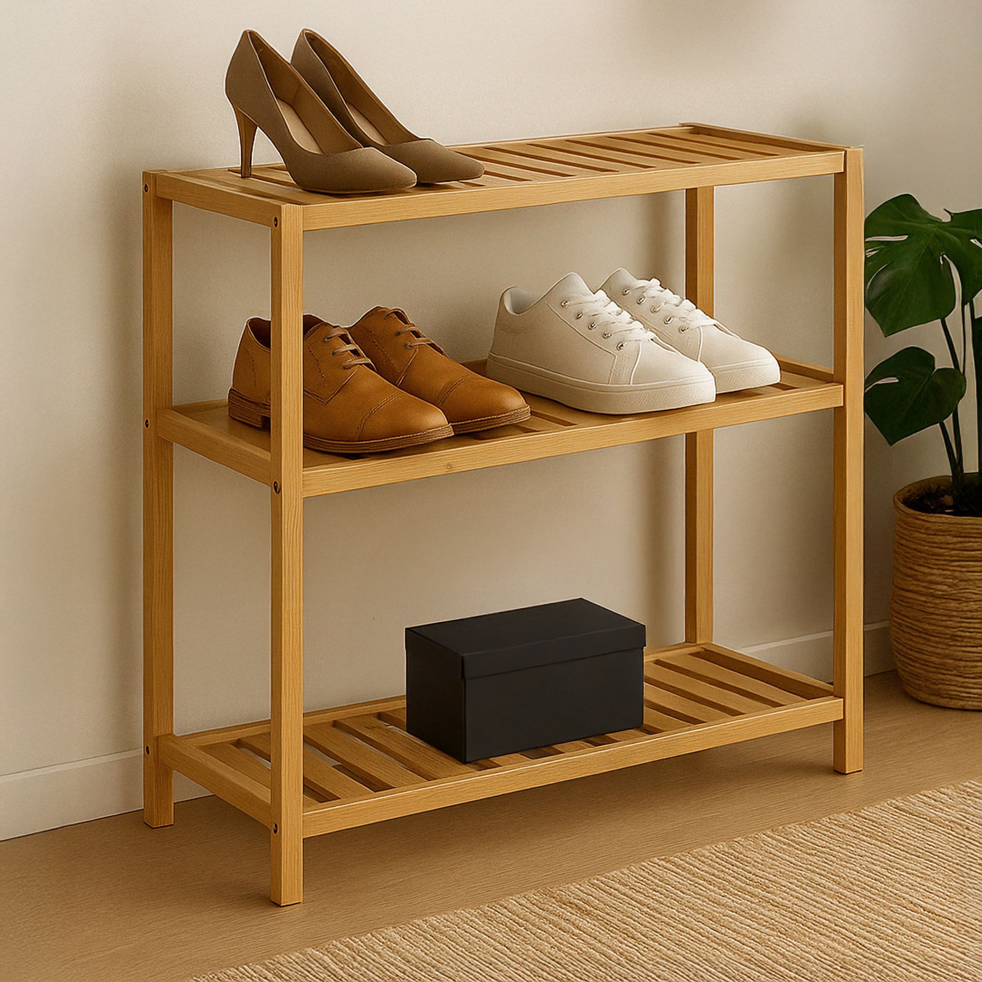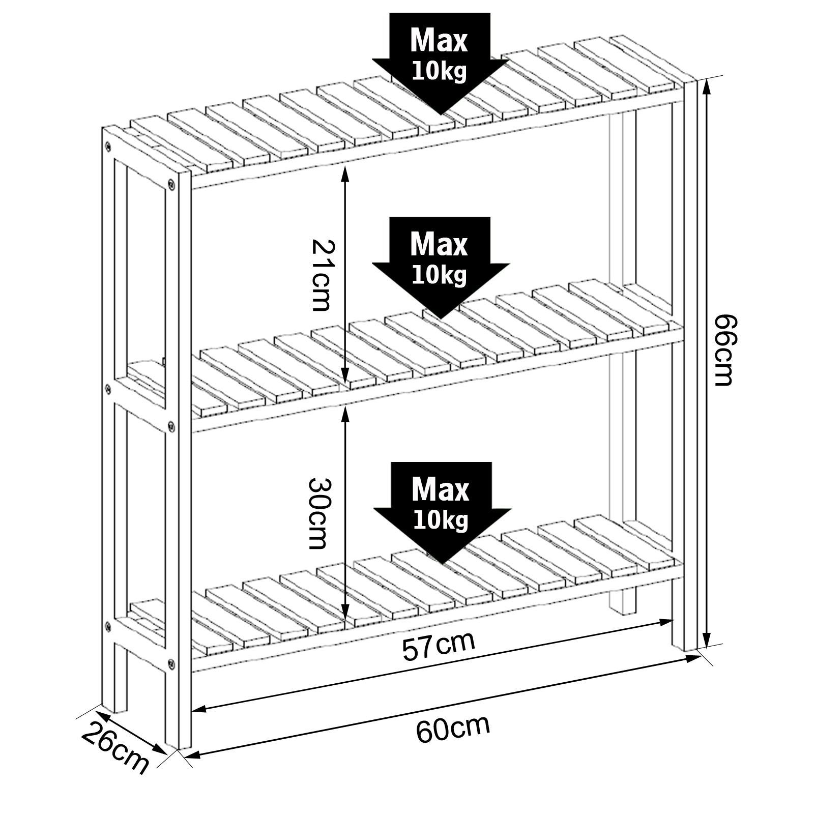 belviona Schuhregal aus Bambus, 3 Ablageflächen, 60x26x66 cm, verschiedene Farben