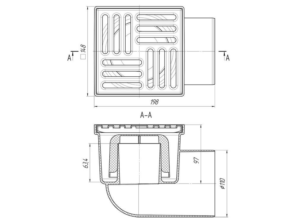 Belvit Bodenablauf Edelstahl Eck 110mm 150x150