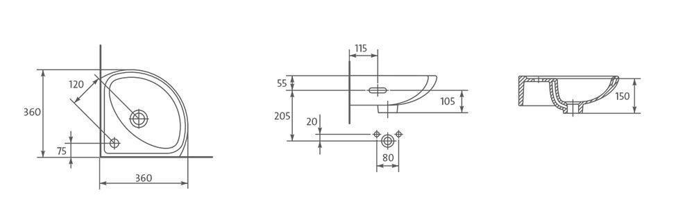 Belvit Keramik Eck Waschbecken Handwaschbecken 36x36x15 cm