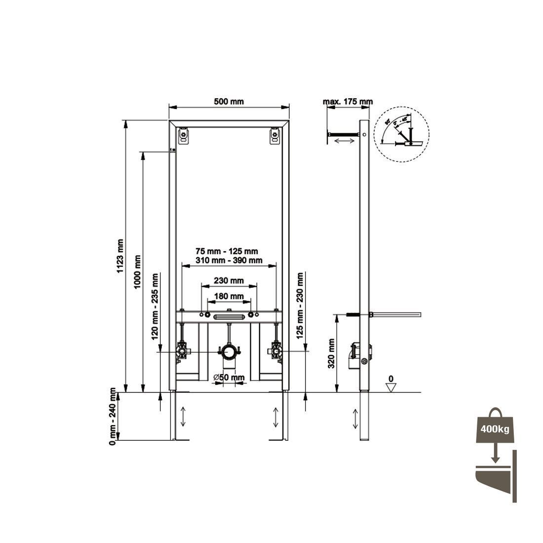 Belvit Trockenbau Vorwandelement, Montageelement für Bidet