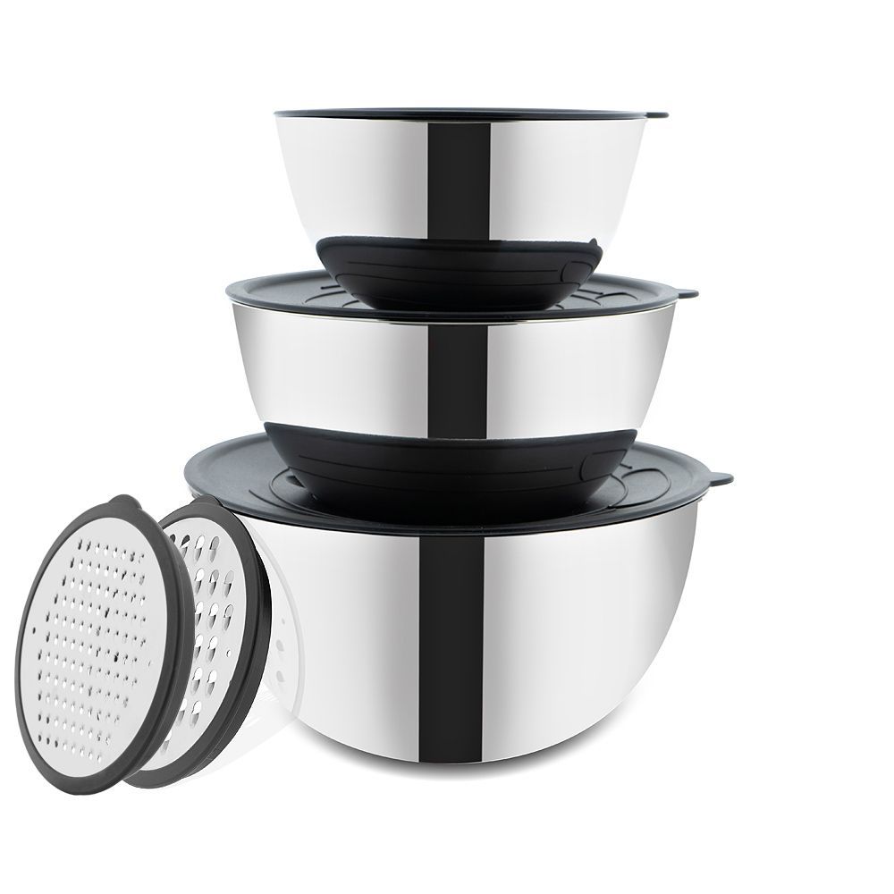 BEM Edelstahlschüssel Set mit 2 Reiben und Deckel 16 cm, 20 cm und 24 cm