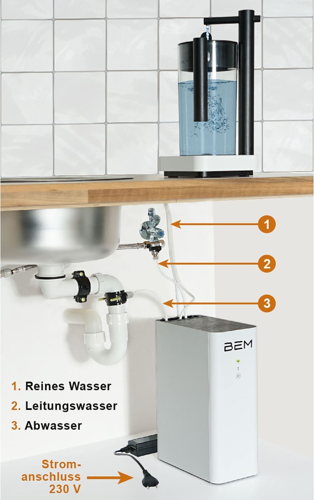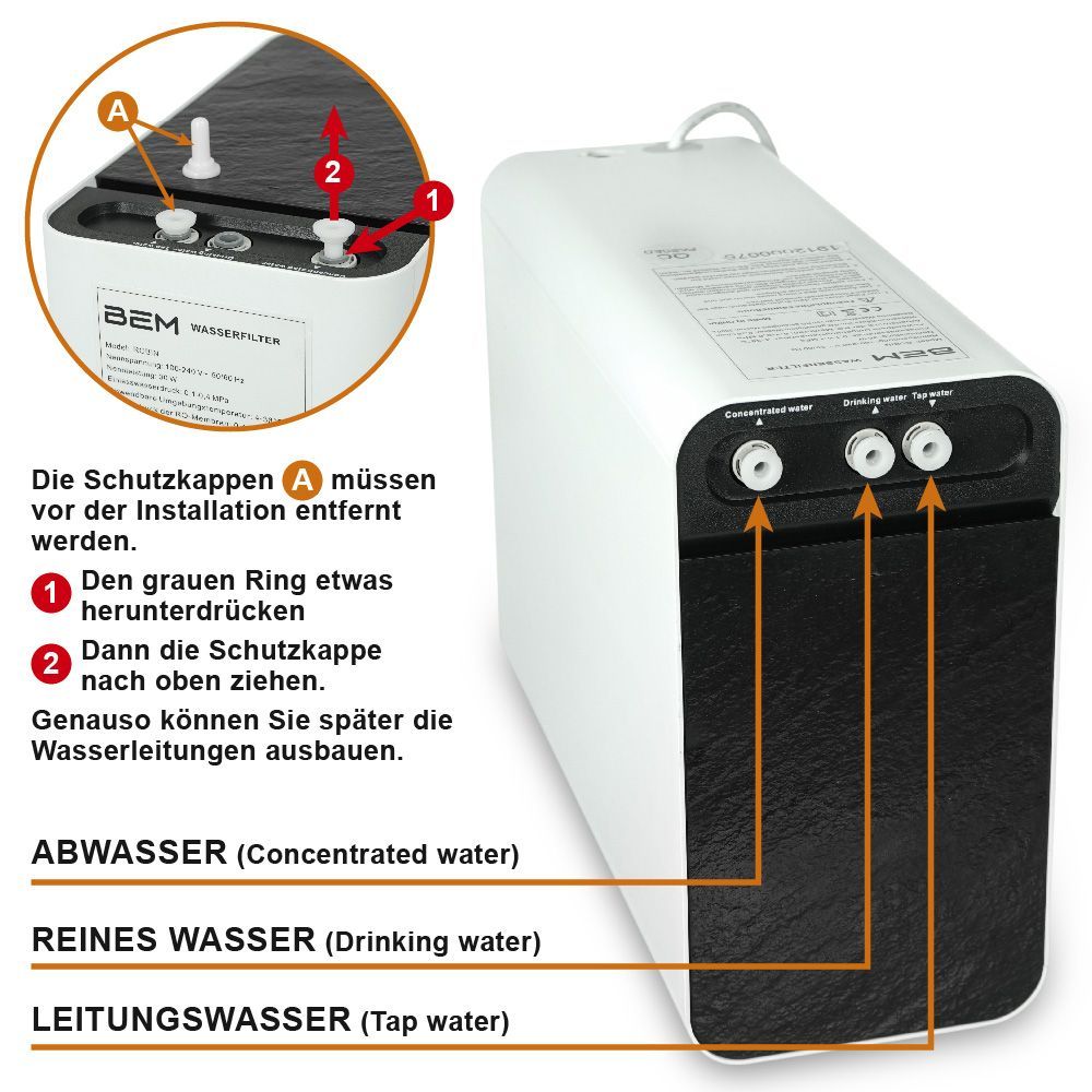 BEM Robin All-in-One kompakte Umkehrosmose Wasserfilteranlage für die Küche,