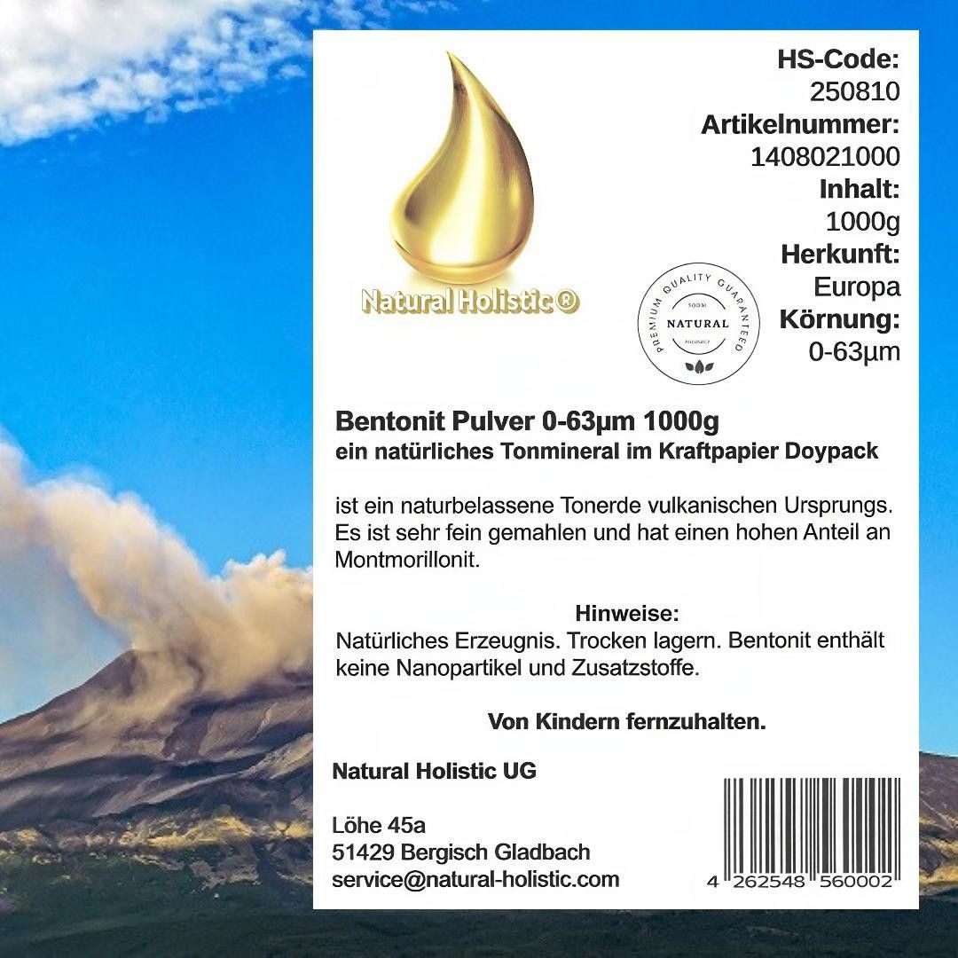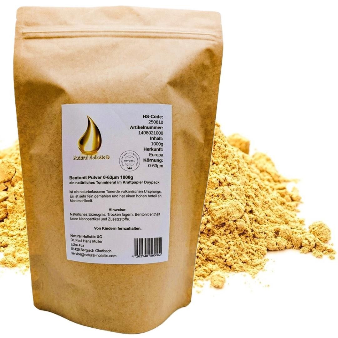 Bentonit Pulver 0-63µm 1000g Tonmineral im Kraftpapier Doypack