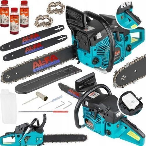 Benzin Kettensäge 6,5PS 52ccm + 2 Kette 2 Schwert 15"/ 18" Motorkettensäge Motorsäge