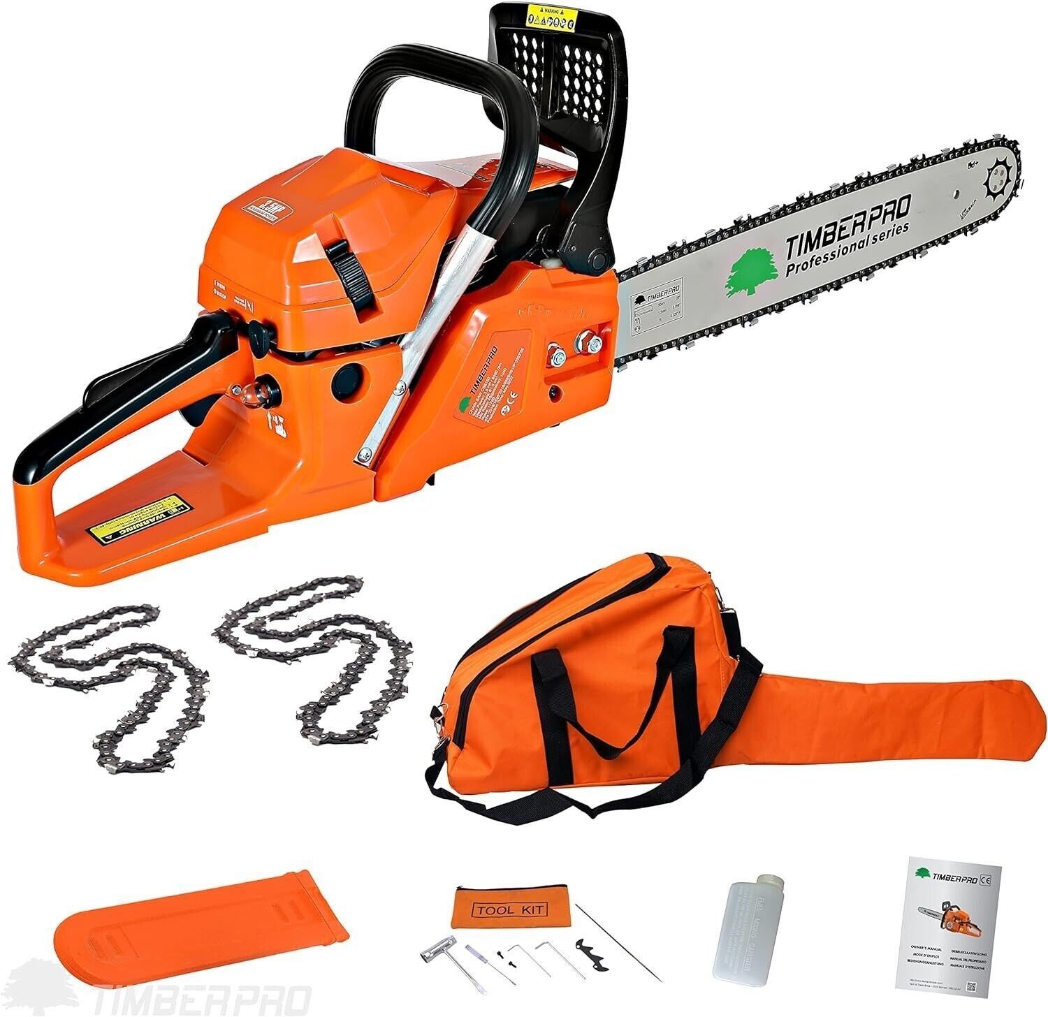 Benzin Kettensäge Motorkettensäge 62ccm 3,6 PS + 2 Ketten Timberpro 2-Takt
