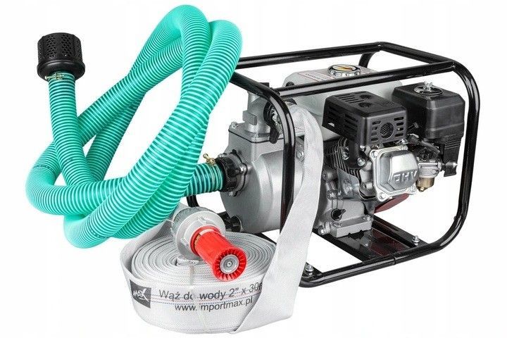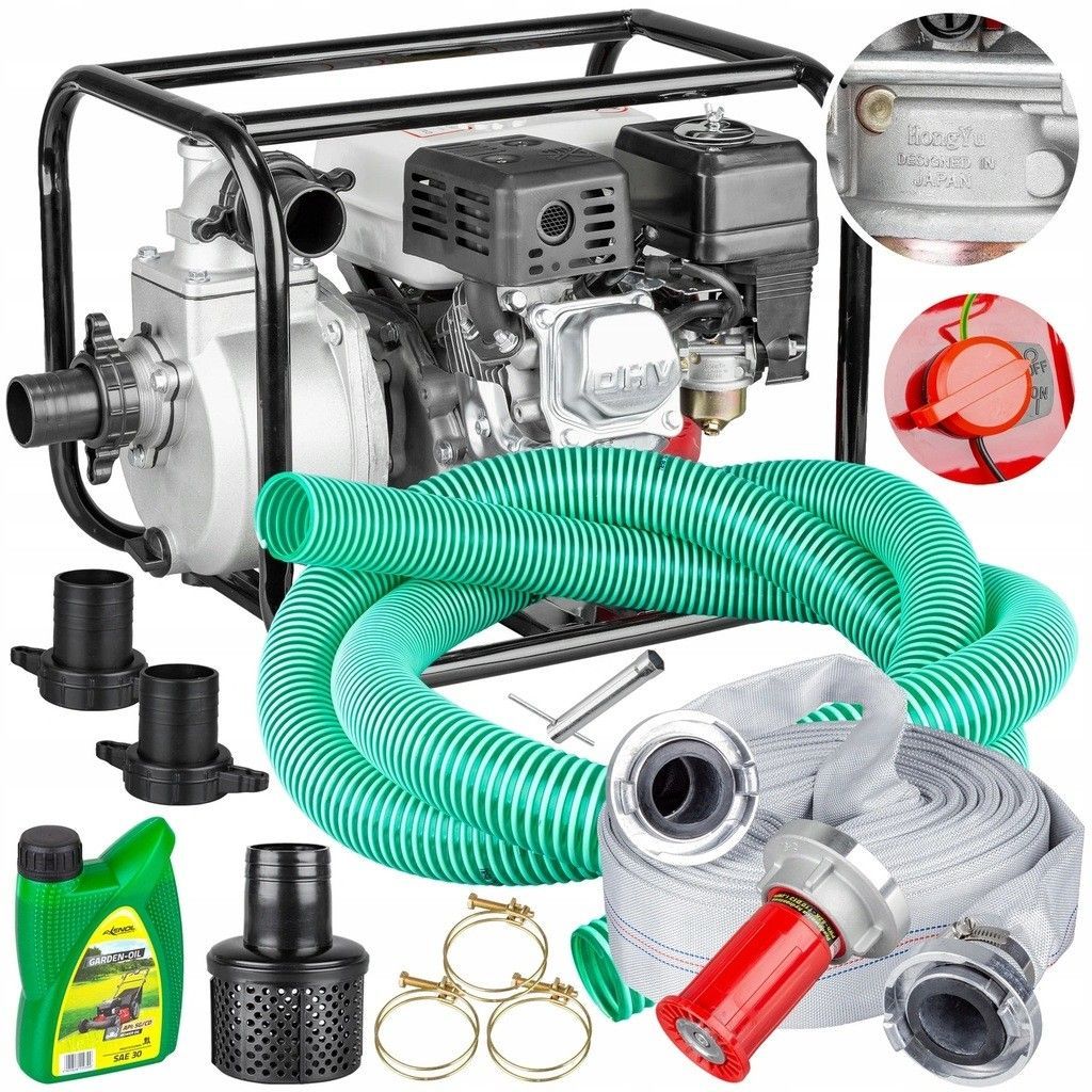 Benzin Wasserpumpe 5,5 PS Gartenpumpe 2´´ 600l/ min + 2x Schlauch Premium