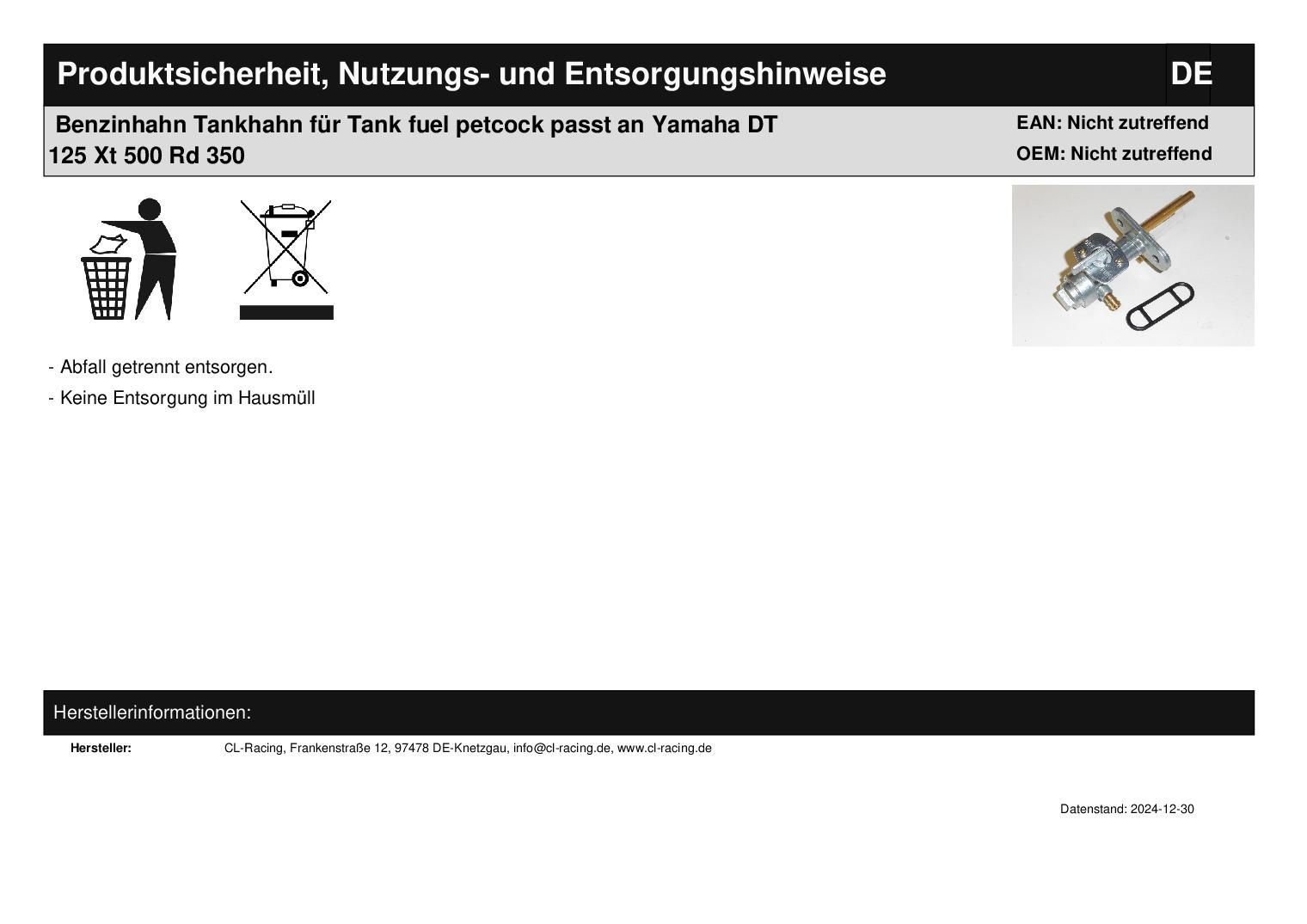 Benzinhahn Tankhahn für Tank fuel petcock passt an Yamaha DT 125 Xt 500 Rd 350