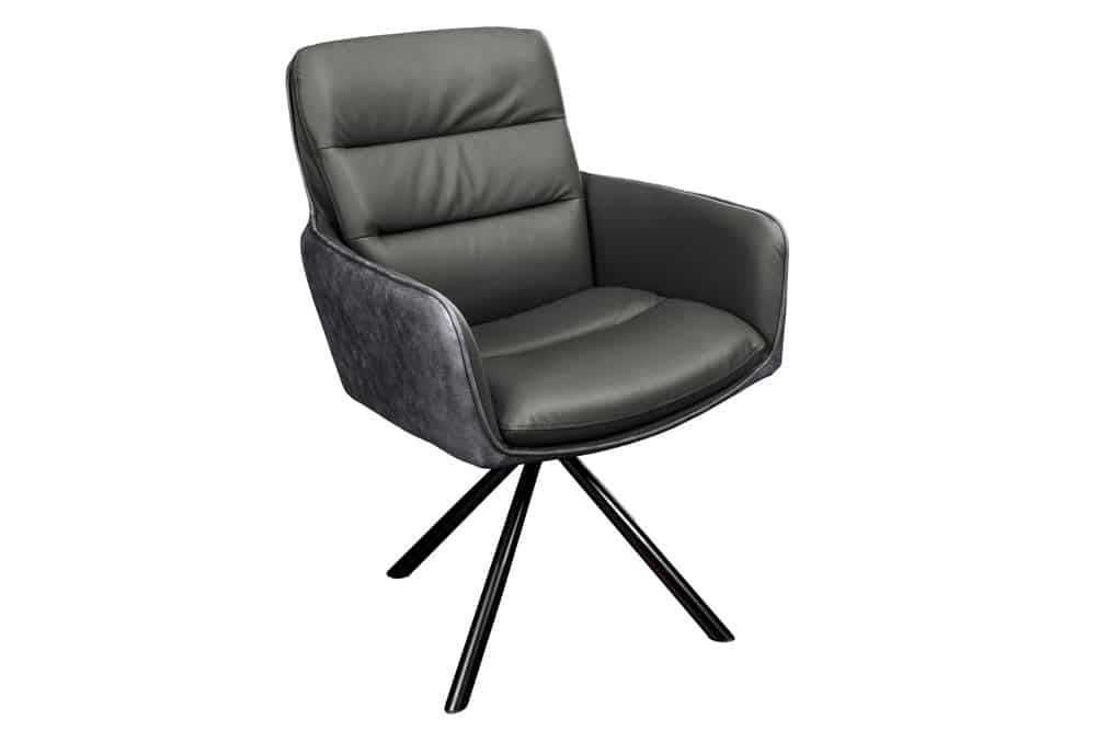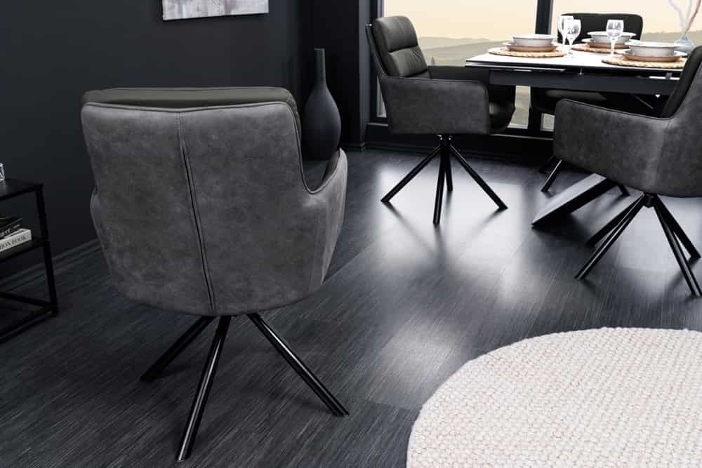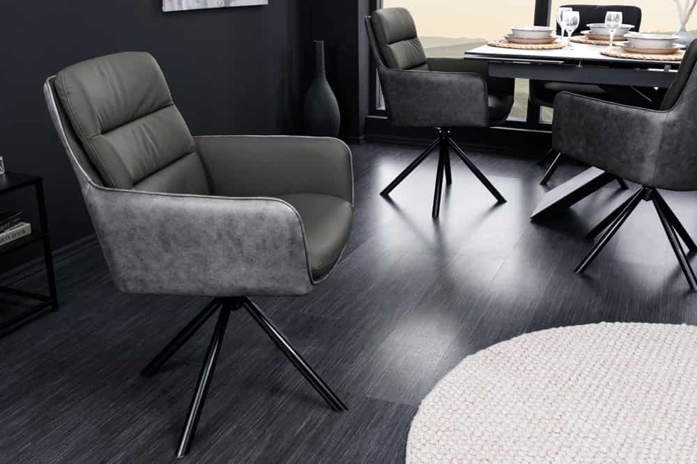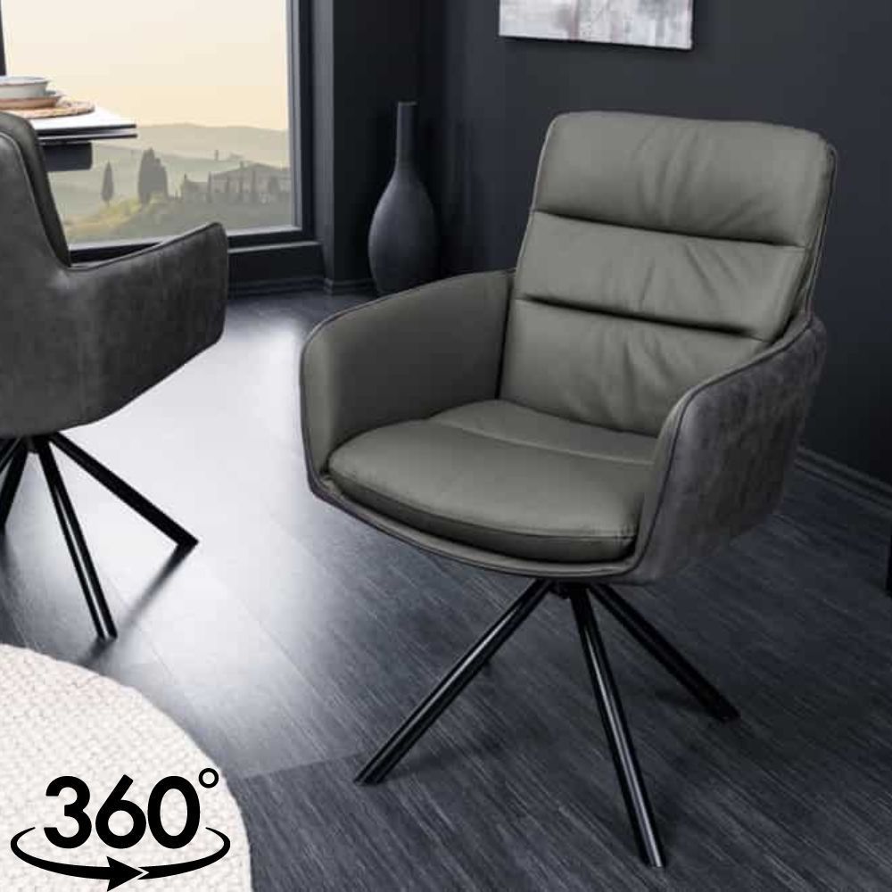 Bequemer Drehstuhl Charles III grau Echtleder Mikrofaser Armlehnen Retro
