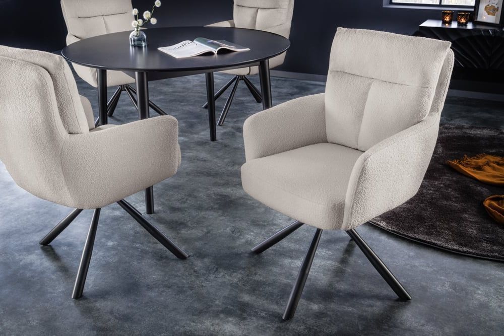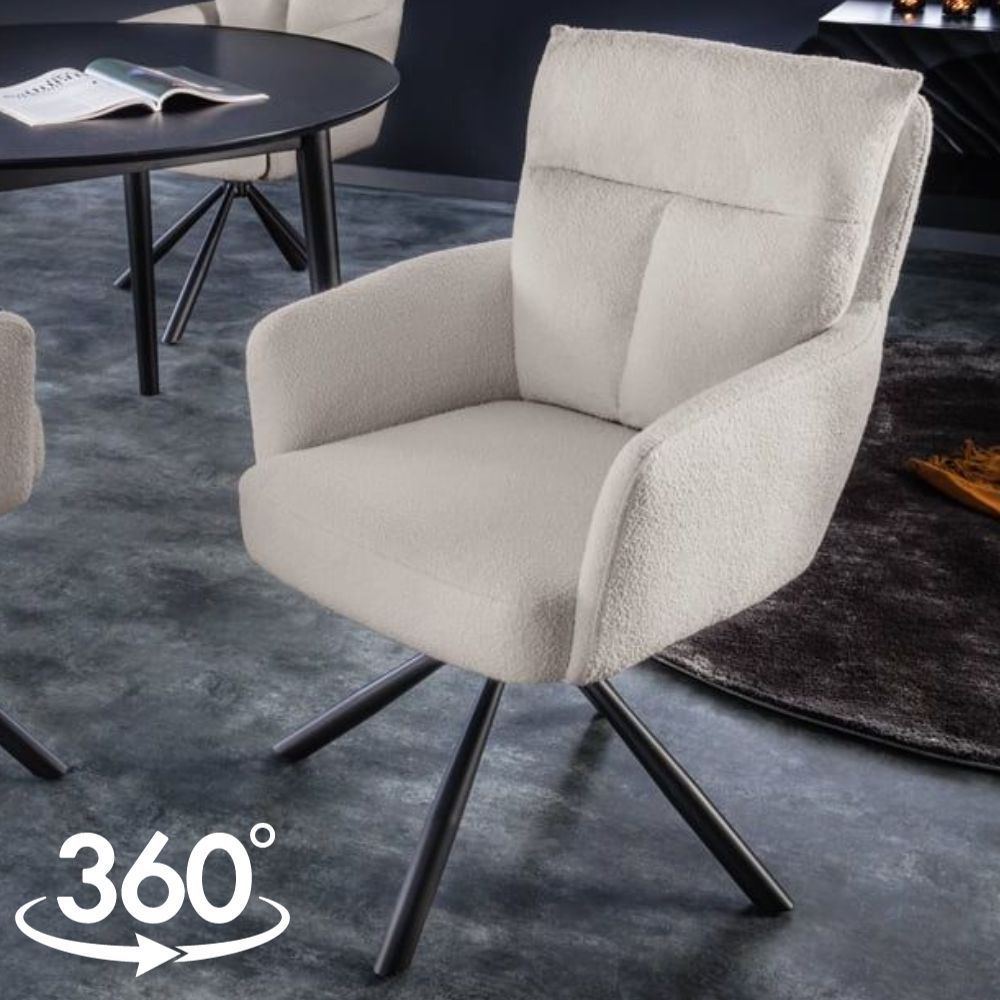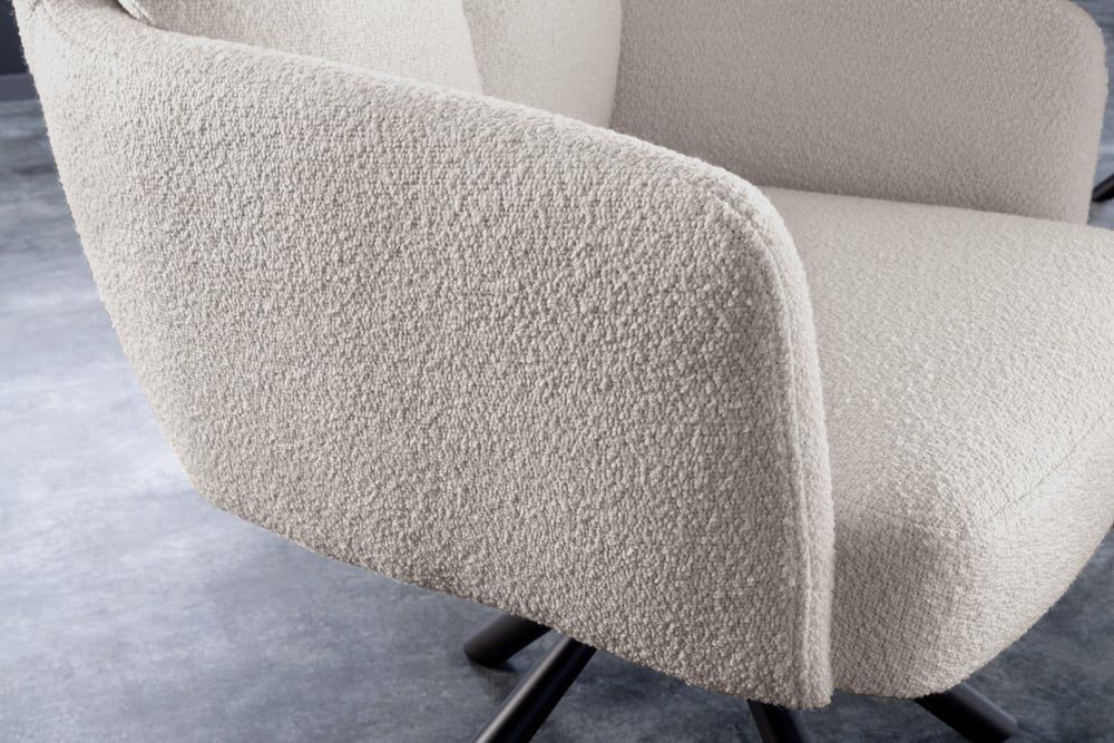 Bequemer Drehstuhl Charles mit Federkernpolsterung beige Bouclé Retro