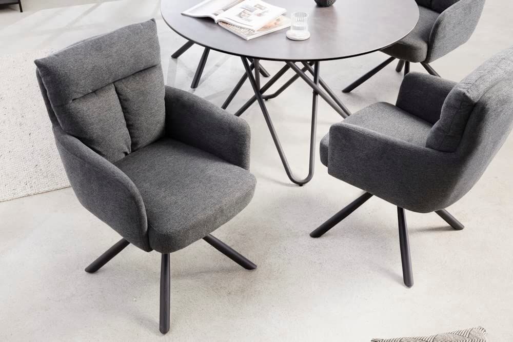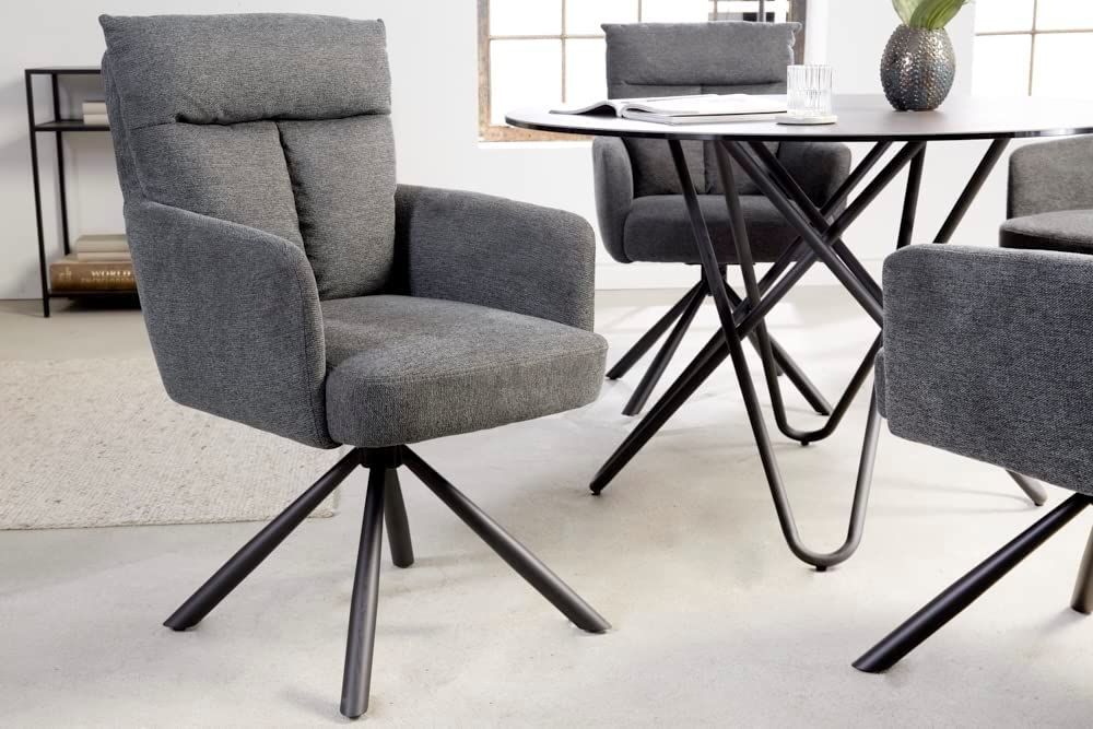Bequemer Drehstuhl Charles mit Federkernpolsterung grau Armlehnen Retro