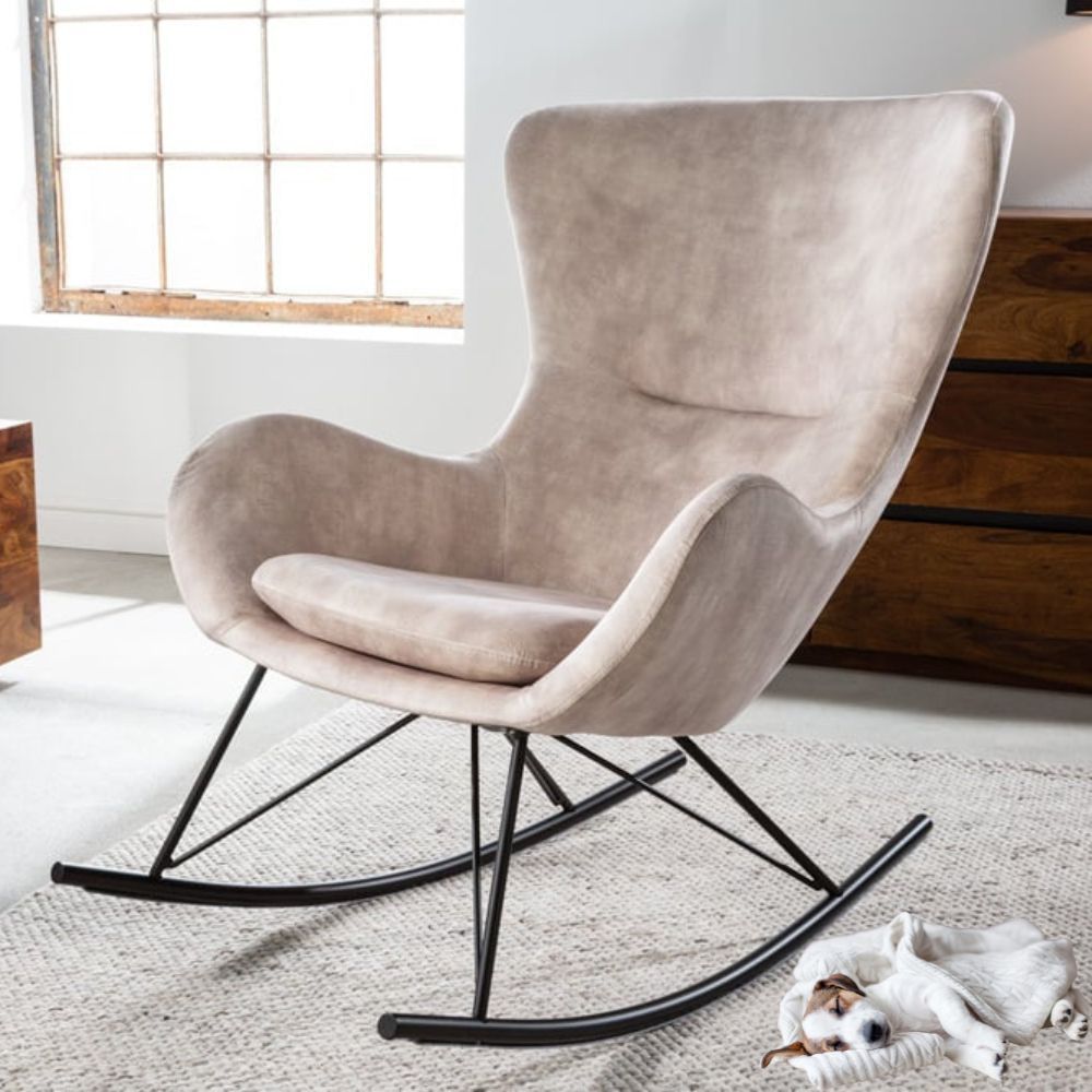Bequemer Schaukelstuhl HYGGE Samt champagner greige Sessel
