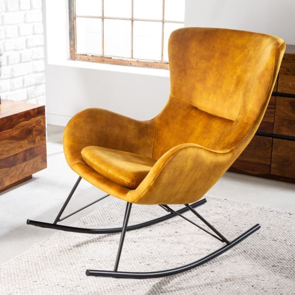 Bequemer Schaukelstuhl HYGGE Samt senf-gelb schwarz Sessel