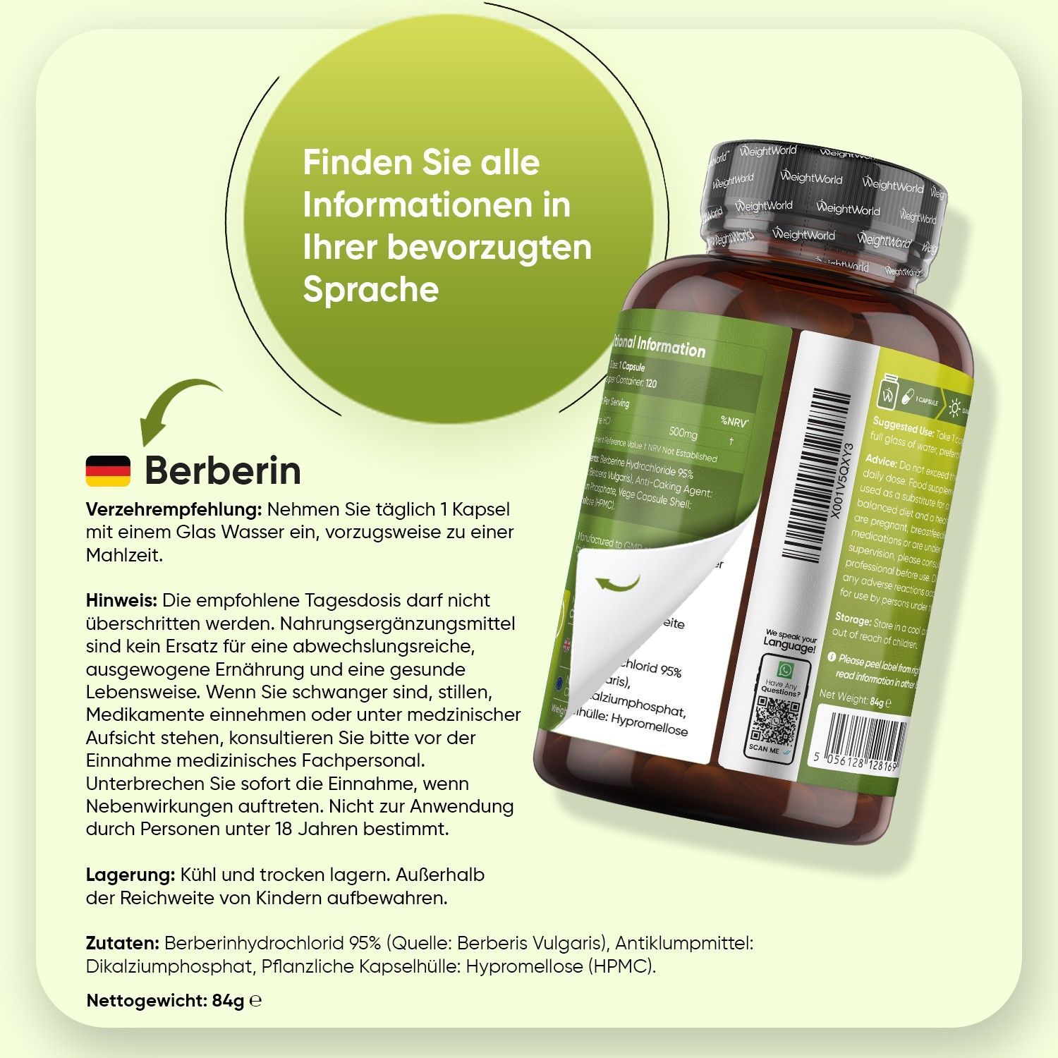 Berberine 500mg - 4 Monate Vorrat - 120 vegane Berberin Kapseln - 2er-Pack
