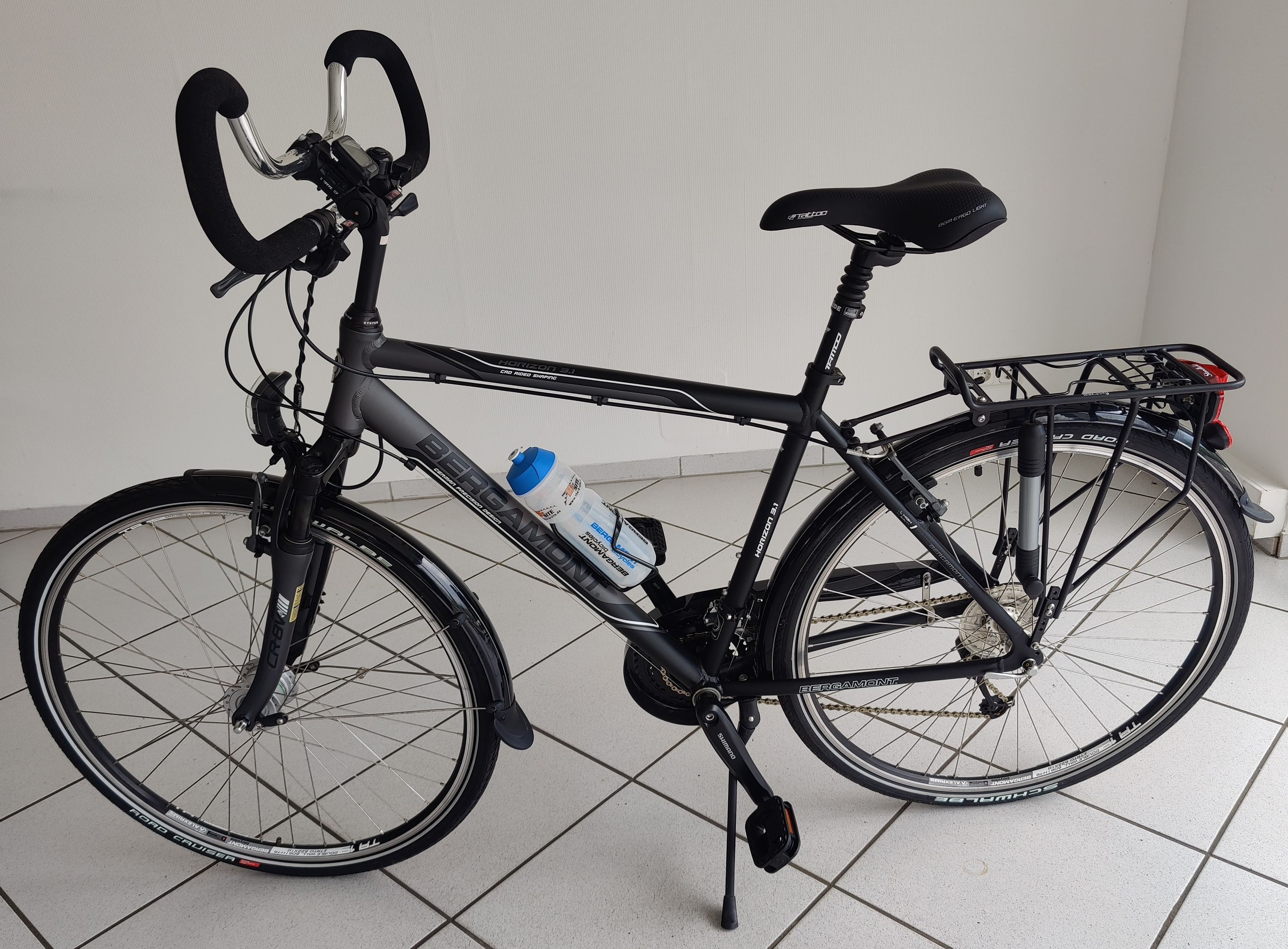 Wir bieten an: Bergamont Trekking Fahrrad Horizon 3.1 Herrenrad Artikel-Nr.: 2400001530 Technische Daten Hersteller Bergamont Modell Trekking Horizon 3.1 Serie Horizon 3.1 Baujahr 2011 Farbe matt schwarz-grau Rahmengröße 56 cm (22 ) Rad-Durchmesser ETRTO 18-622 Zoll 28 x 3 4 Franz. 700 x 18C Rahmen ... Mehr