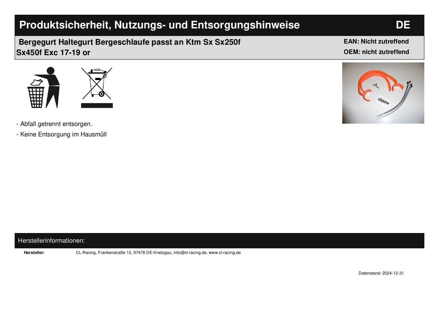 Bergegurt Haltegurt Bergeschlaufe passt an Ktm Sx Sx250f Sx450f Exc 17-19 or