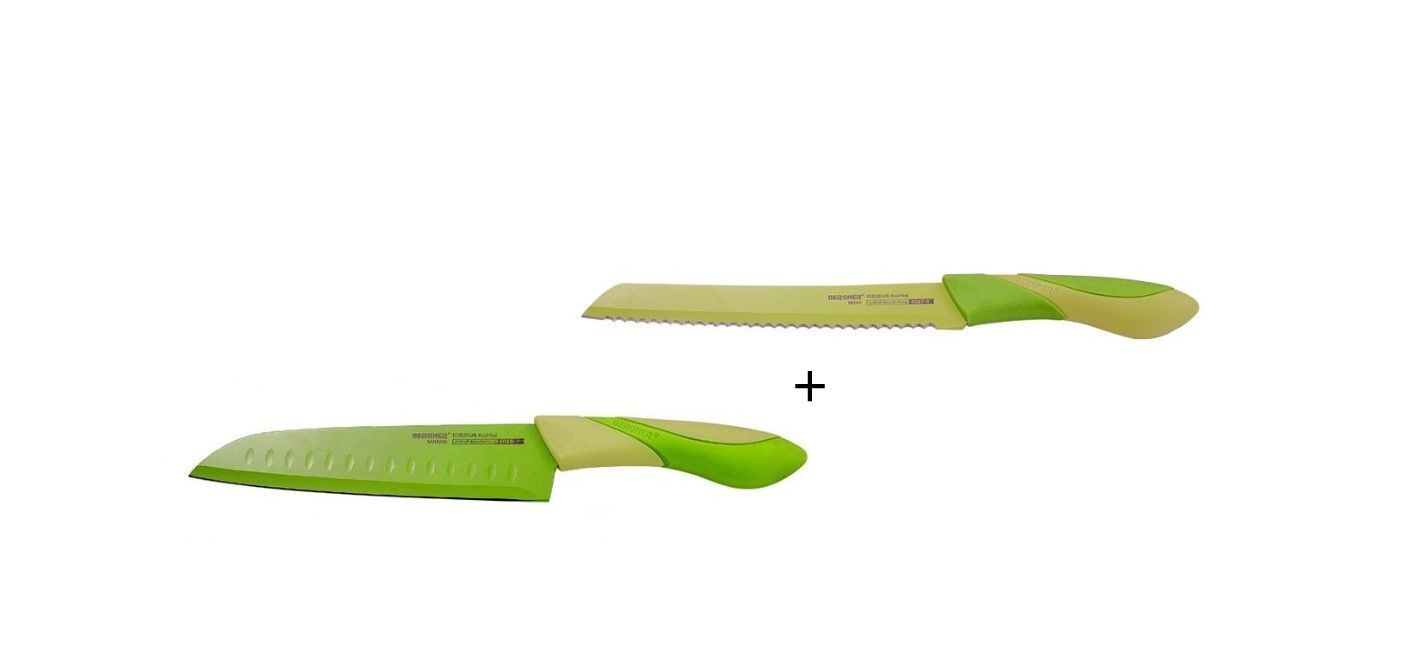 Bergner Bergner 2er Set Küchenmesser Santoku + Brotmesser Grün Nano Tech Plus Edelstahl