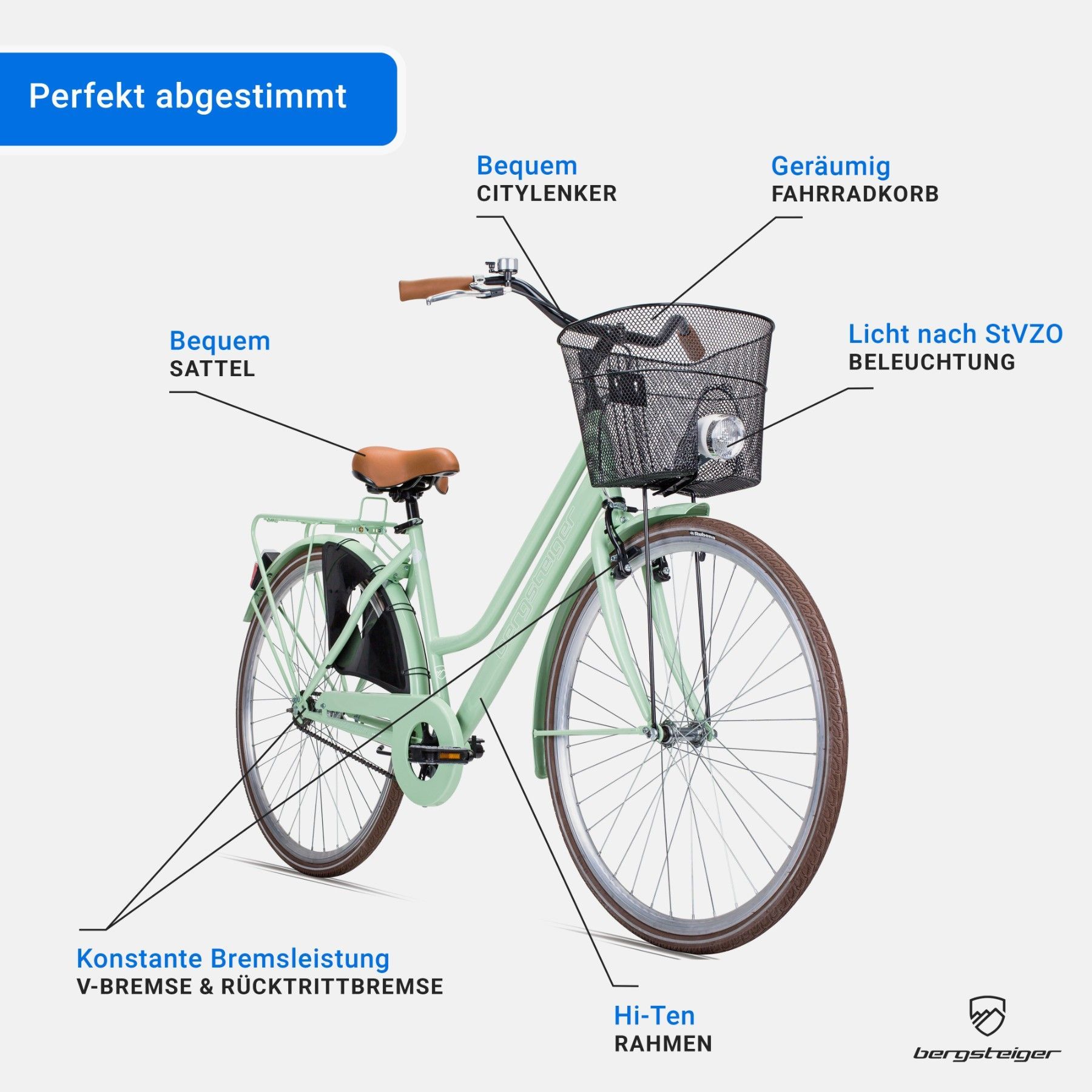 Bergsteiger Amsterdam 26 Zoll, 28 Zoll Damenfahrrad, ab 150 cm, Korb, Fahrrad-Licht