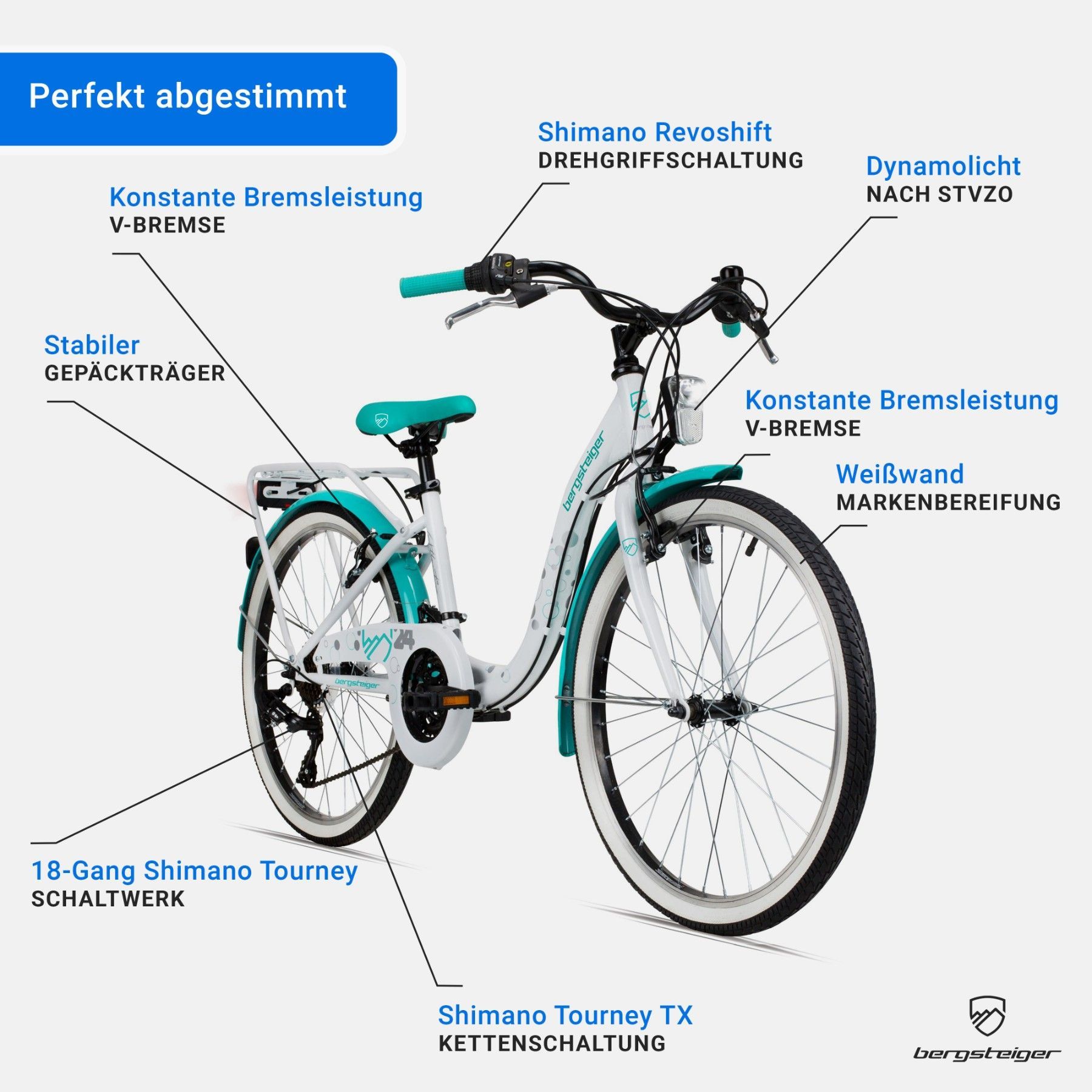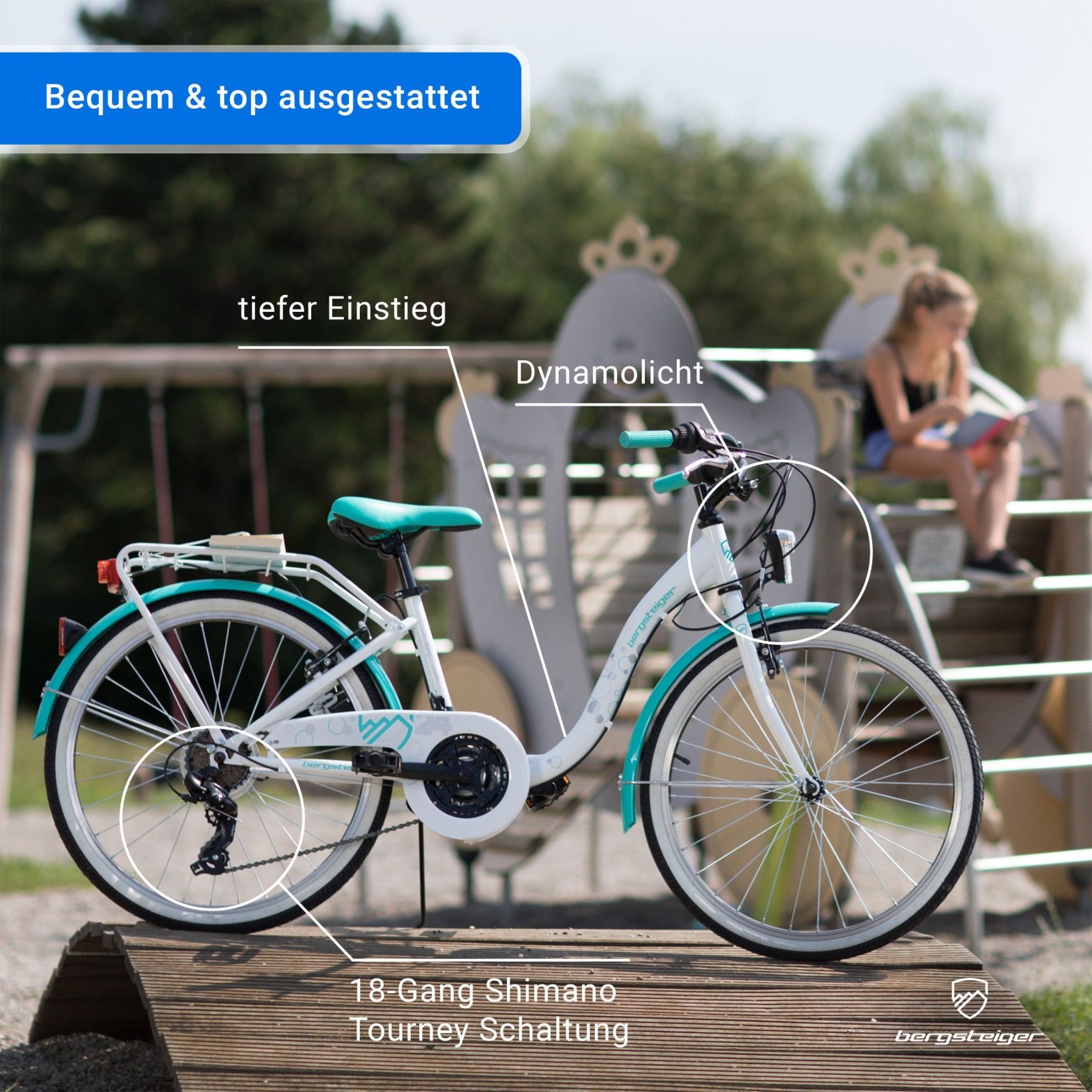 Wir haben unsere Tochter das Fahrrad zum siebten Geburtstag geschenkt. Das Fahrrad kam sehr gut bei ihr an und ist optisch ein Knaller. Bei diesem Fahrrad mit dem umfangreichen Zubehör, haben wir wenig Bedenken Sie auch mal zu einer Freundin fahren zu lassen (Natürlich nur in der 30er Zone und keine Hauptstraße). Es hat wirklich alles was man sich wünscht: Vorder- und Rücklicht über einen Dynamo betrieben, Reflektoren in den Speichen, sowie eine Klingel. Außerdem Gangschaltung und Vorder- und Hinterrad-Bremse. Alles in allem als erstes großes Mädchen/ großer Junge Fahrrad sehr zu empfehlen. 5*****
