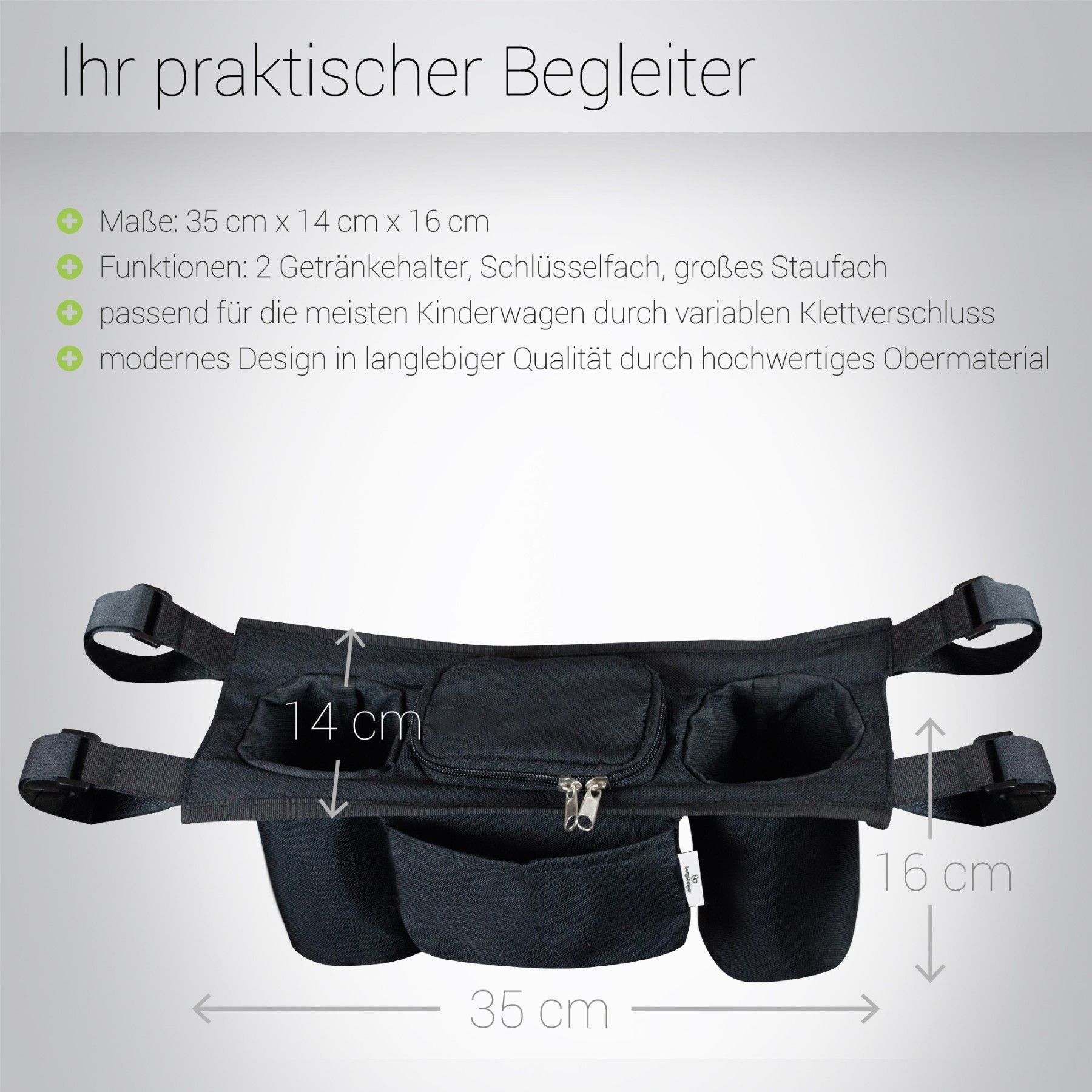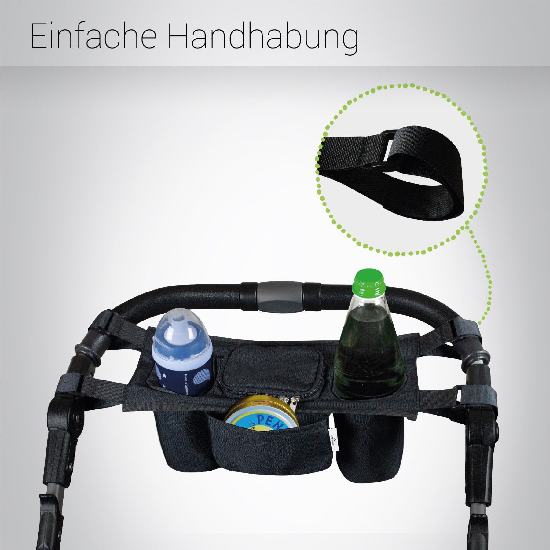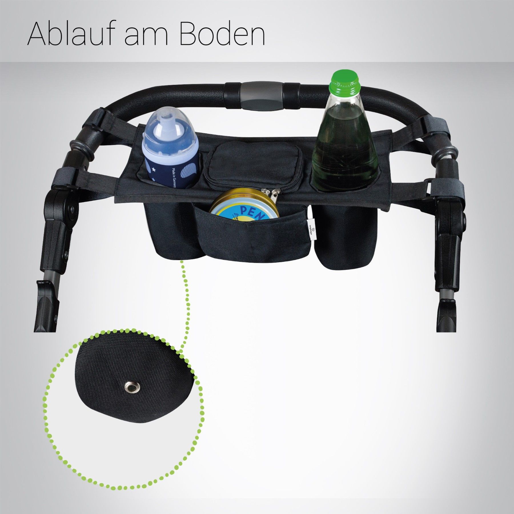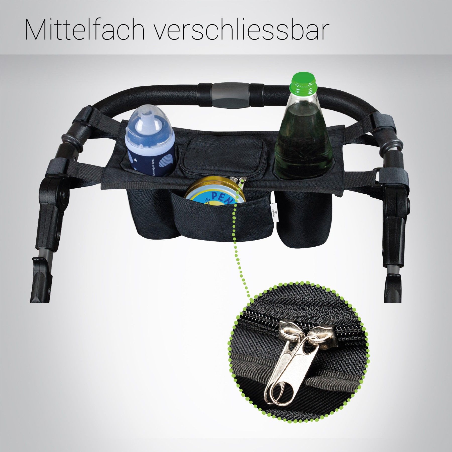 Bergsteiger Kinderwagen Organizer Basic, großes Mittelfach, zwei Getränkehalter, geri
