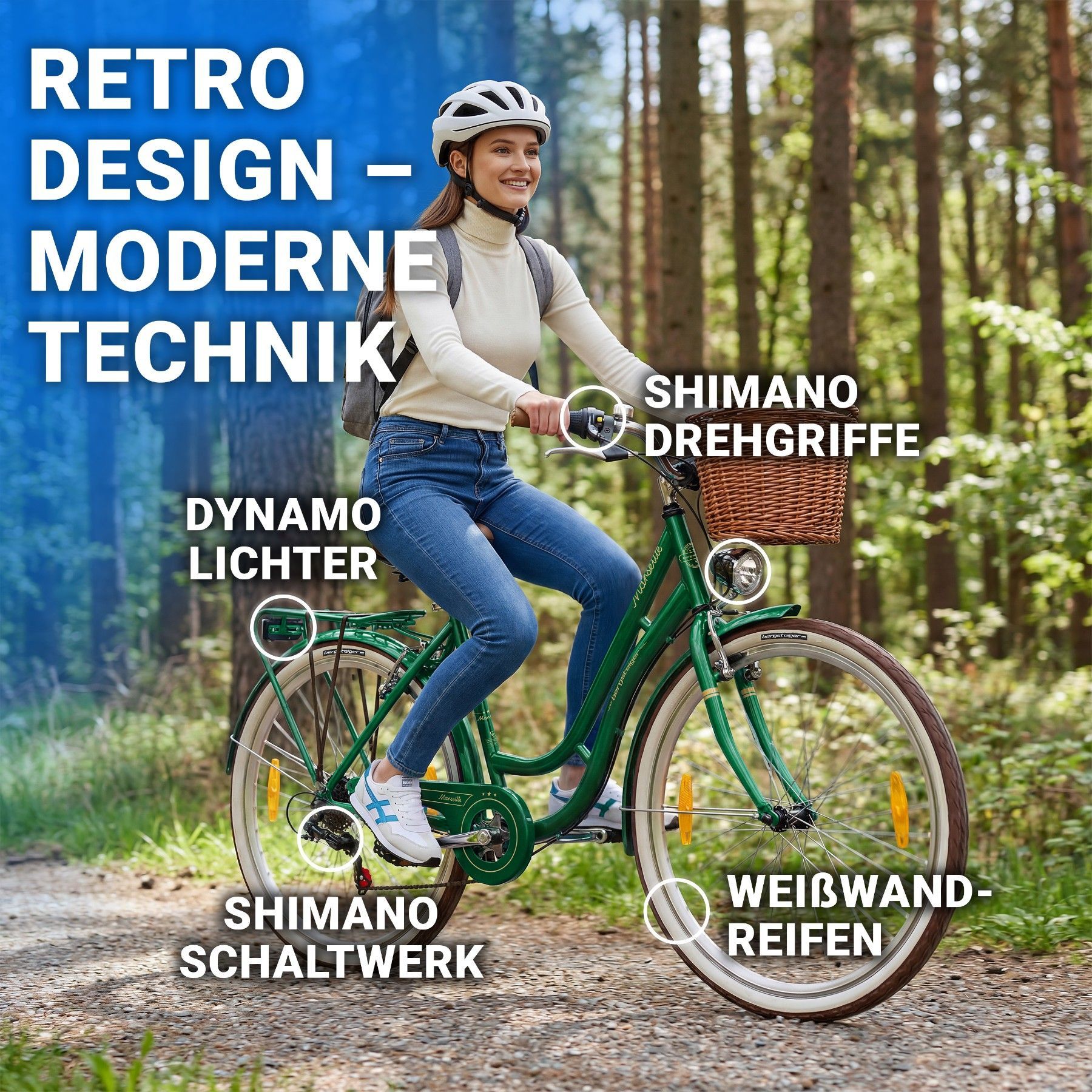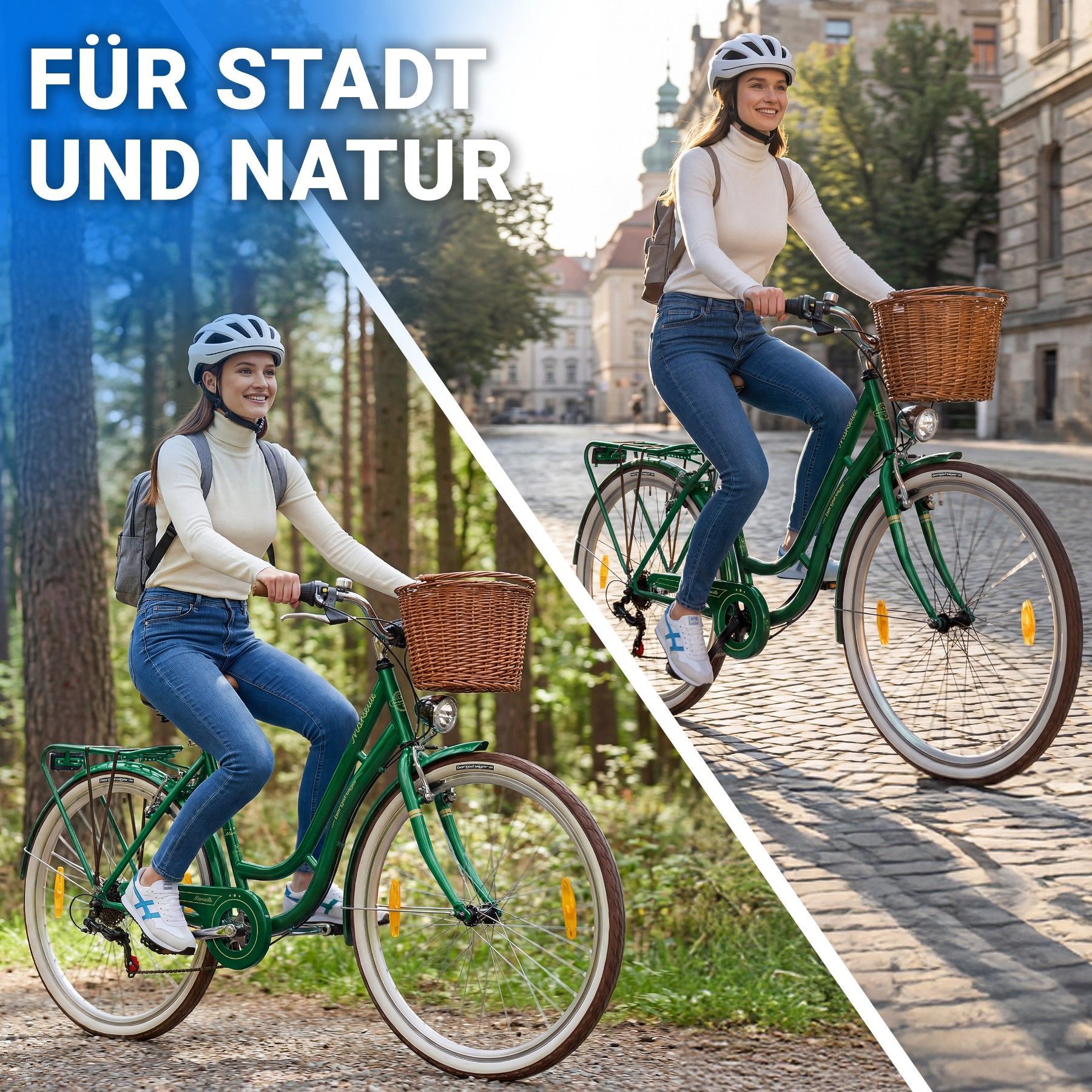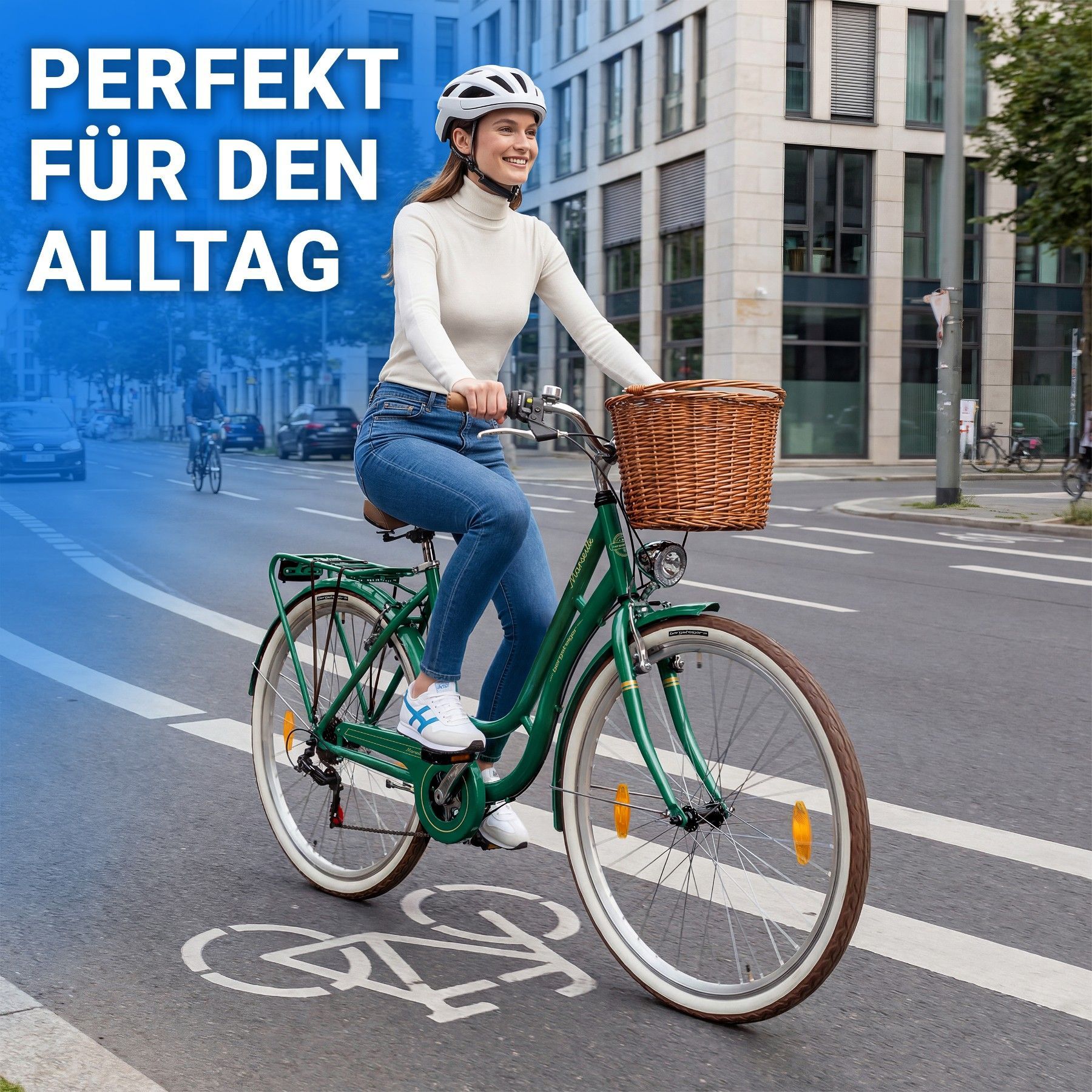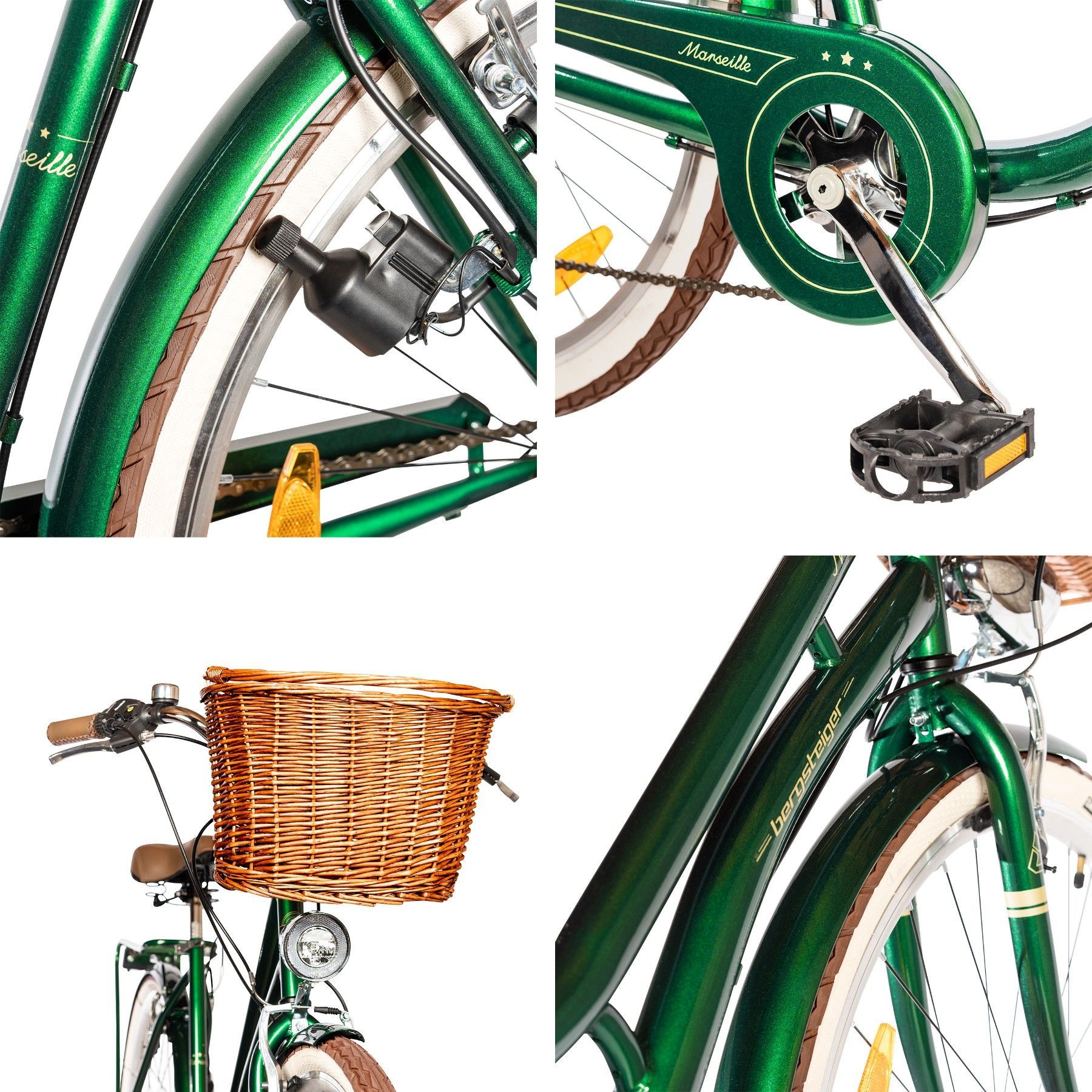 Bergsteiger Marseille 26 Zoll, 28 Zoll Damenfahrrad, ab 150 cm, Korb aus Rattan