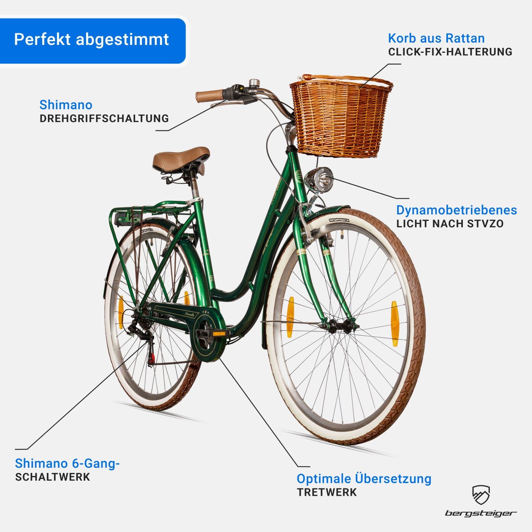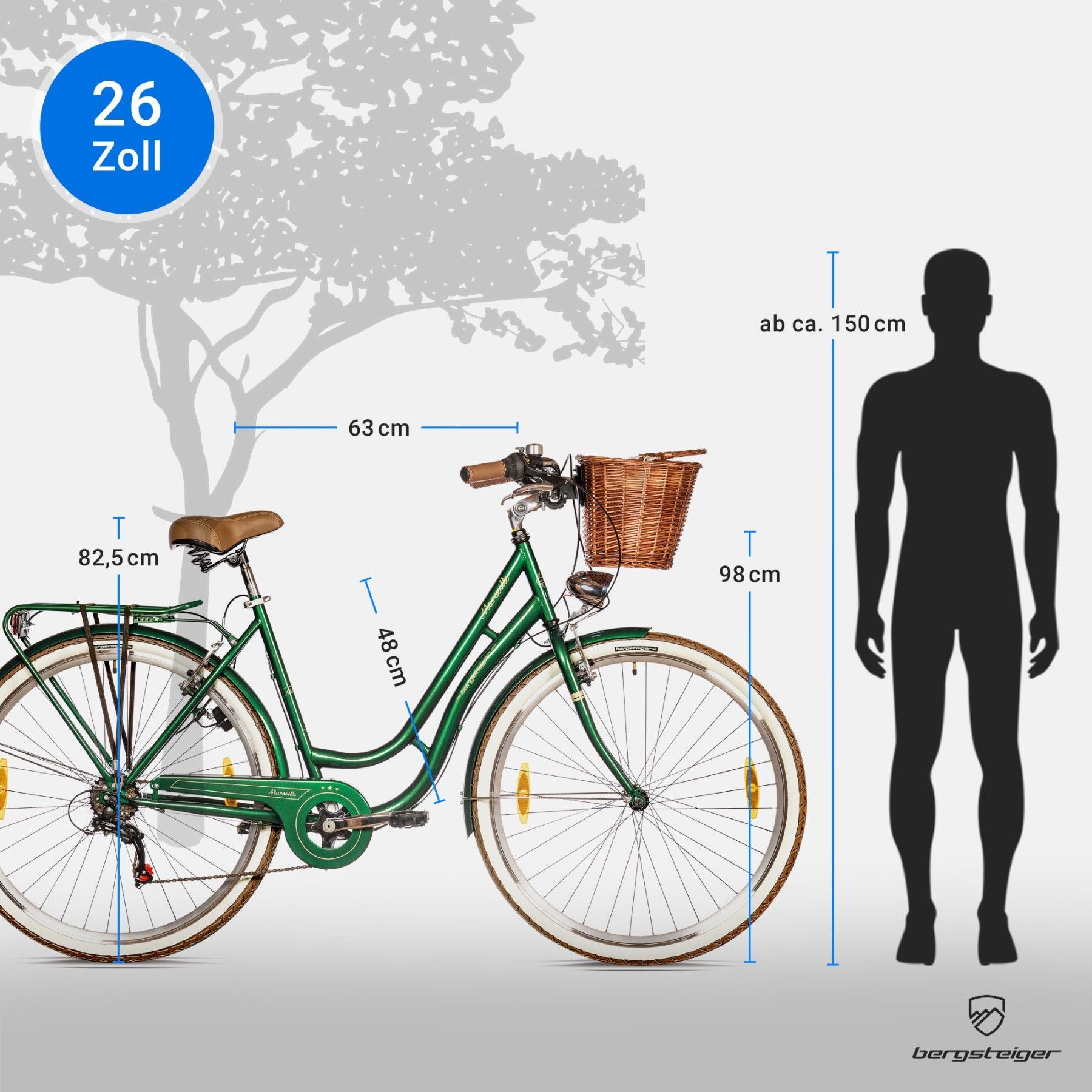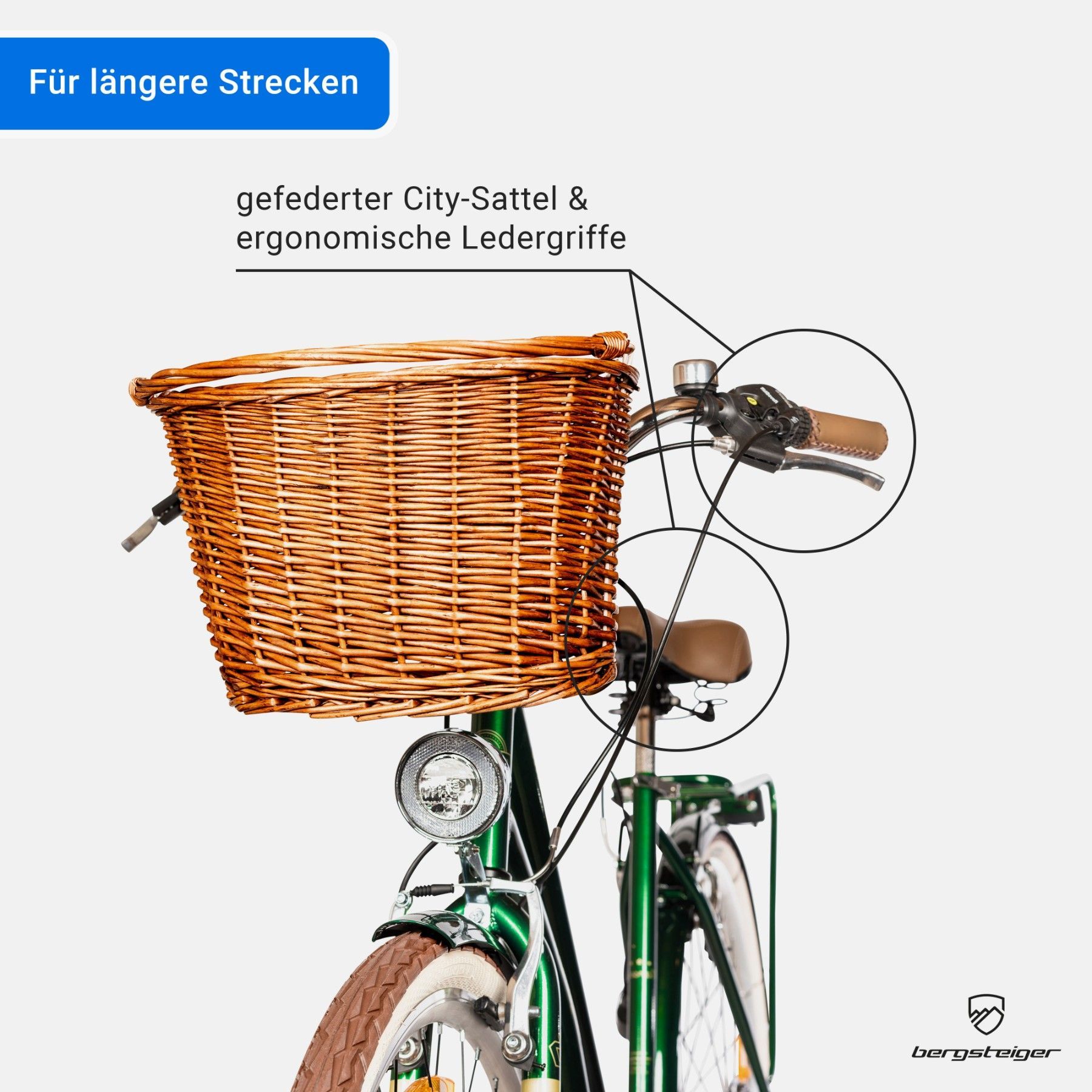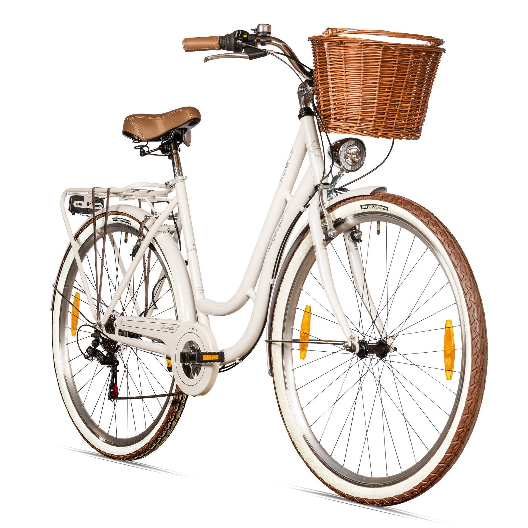 Bergsteiger Marseille 26 Zoll, 28 Zoll Damenfahrrad, ab 150 cm, Korb aus Rattan