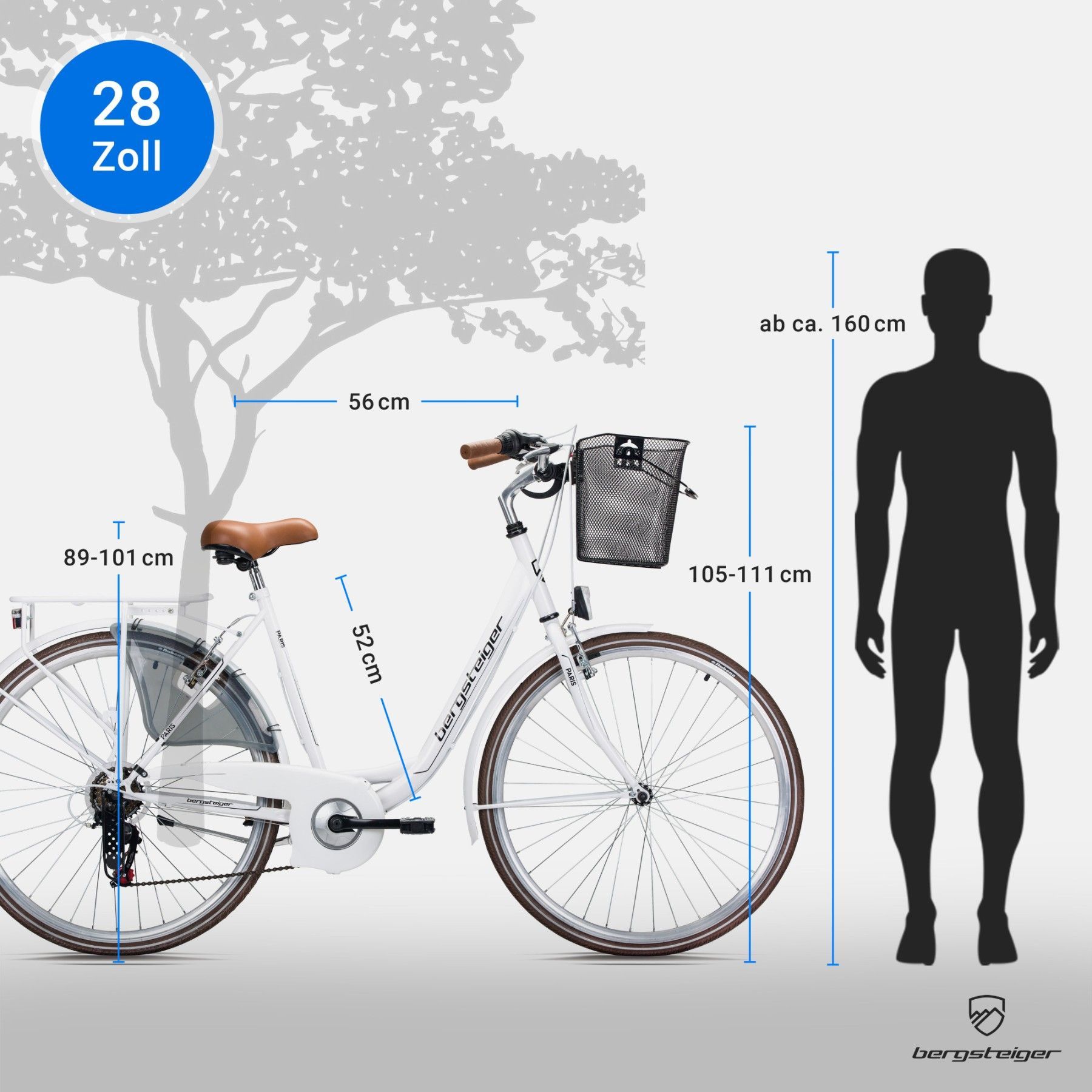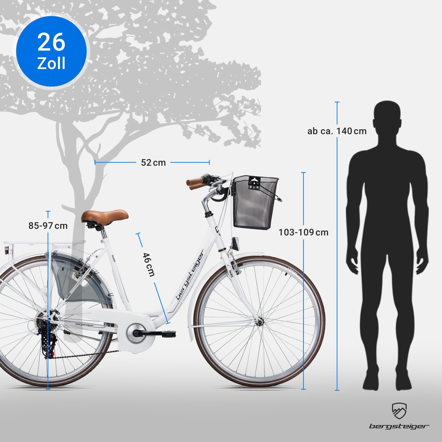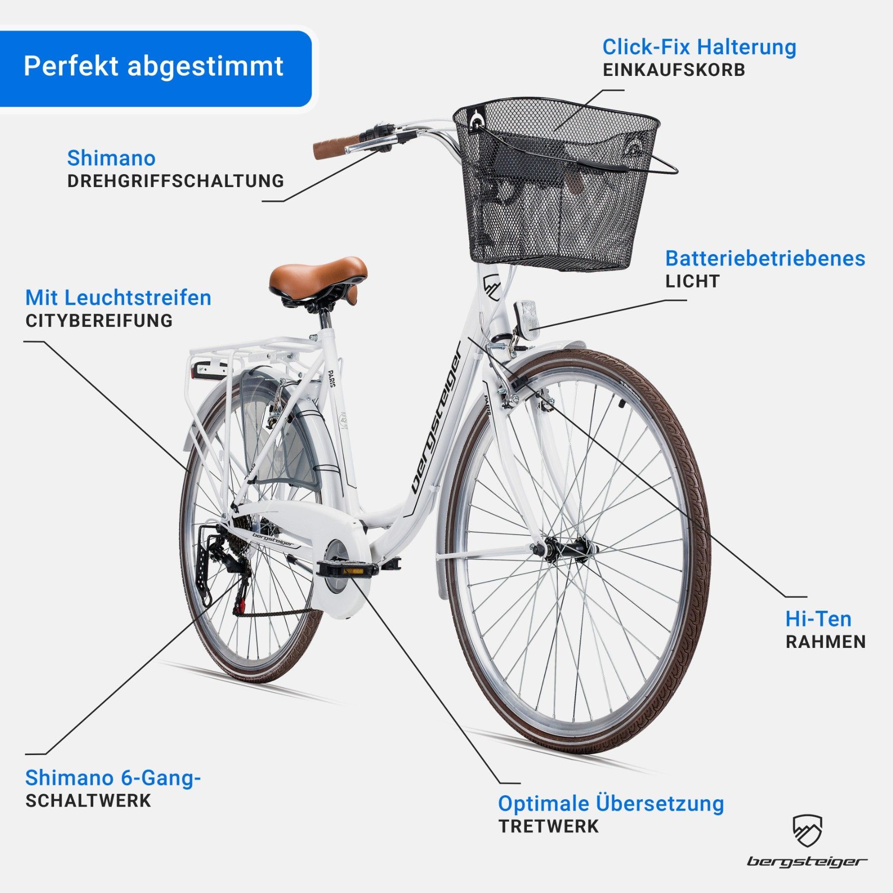 Bergsteiger Paris 26, 28 Zoll Damenfahrrad, ab 140 cm, Korb, Fahrrad-Licht, 6 Gänge