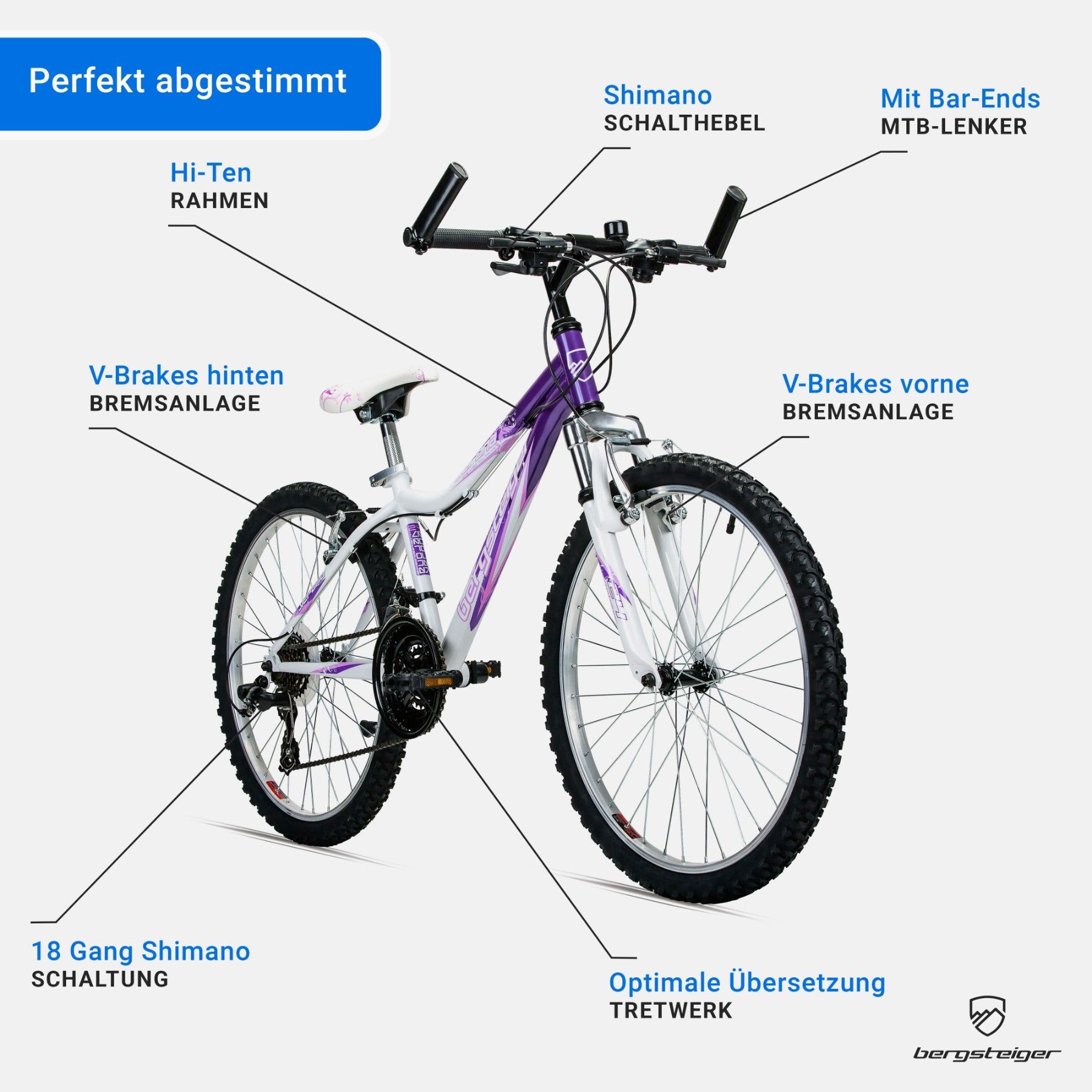 Bergsteiger Verona 24 Zoll Kinderfahrrad, geeignet für 8, 9, 10, 11 Jahre, Shimano 18