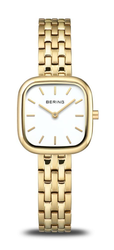 Klassisch, puristisch und dennoch aufregend. Vollendeter Stil kombiniert mit modernem Minimalismus, die Damenuhren der Classic Serie von Bering. Glänzendes goldfarben ionisiertes Edelstahlgehäuse mit goldfarbenem Edelstahlband und Klappverschluß, kratzfestes synth.Saphirglas, 3 ATM wasserdicht