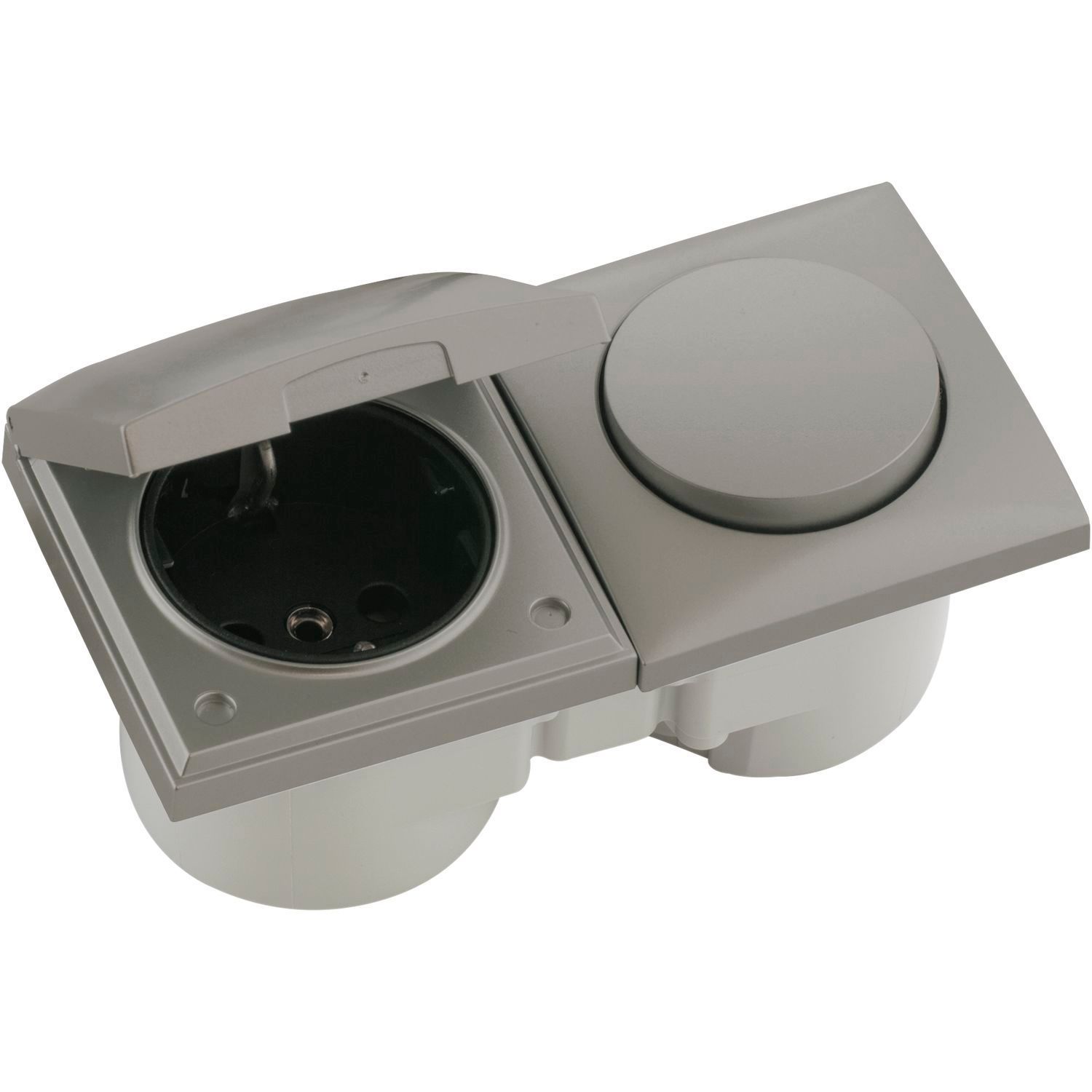 Berker Berker Integro Flow Schalter/Deckel Edelstahl Effekt + Steckdose schwarz ()