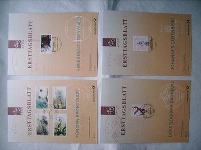 • 4 Ersttagsblätter Deutschland aus 2000: Karneval, Gutenberg, Sport, Frauen