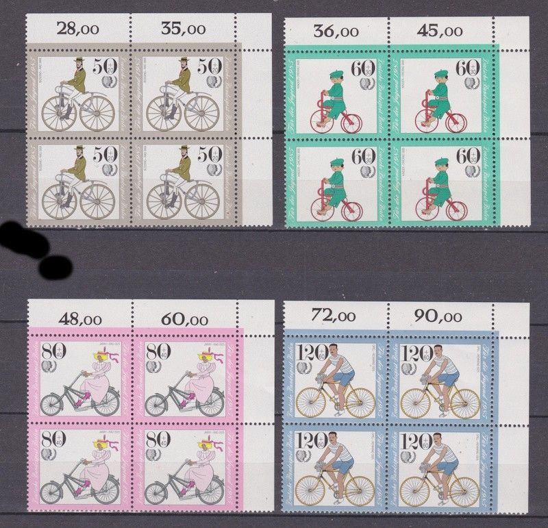 Berlin 1985 postfrisch vierer Block Ecke oben recht MiNr. 735-738 Internationales Jahr der Jugend Historische Fahrräder