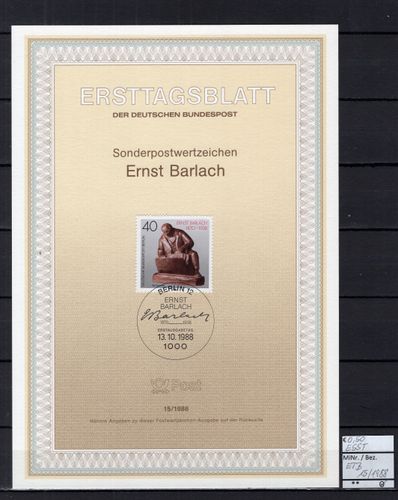 Berlin 1988 50. Todestag von Ernst Barlach MiNr. 823 ETB 15/1988 ESST