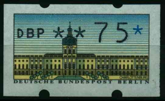 BERLIN ATM 1987 Nr 1-075R postfrisch 075 Pfg Wert aus der ATM-Ausgabe von 1987, mit rückseitiger Nummer 1.47€ incl. MwSt: Differenzbesteuert zzgl. Versandkosten Bestell-Nr.: S384AF6 Katalog-Nr: MICHEL (ATM 1-075R) Katalogpreis: 4,01 EUR Qualität: Normal Erhaltung: Postfrisch ** Einheit: Einzelm