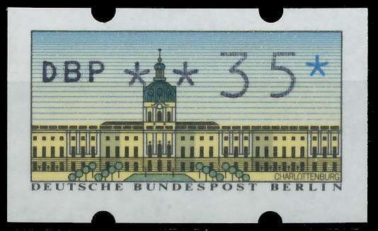 BERLIN AUTOMATENMARKEN Nr ATM 1-035 postfrisch 035 Pfg Wert aus der ATM-Ausgabe von 1987 1.14€ incl. MwSt: Differenzbesteuert zzgl. Versandkosten Bestell-Nr.: S4A7712 Katalog-Nr: MICHEL (ATM 1-035) Katalogpreis: 2,32 EUR Qualität: Normal Erhaltung: Postfrisch ** Einheit: Einzelmarke Einzelstück