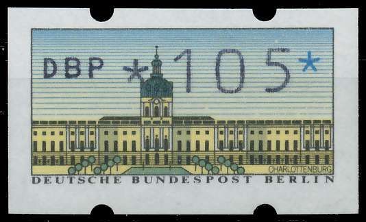 BERLIN AUTOMATENMARKEN Nr ATM 1-105 postfrisch 105 Pfg Wert aus der ATM-Ausgabe von 1987 1.47€ incl. MwSt: Differenzbesteuert zzgl. Versandkosten Bestell-Nr.: S4A7742 Katalog-Nr: MICHEL (ATM 1-105) Katalogpreis: 2,95 EUR Qualität: Normal Erhaltung: Postfrisch ** Einheit: Einzelmarke Einzelstück