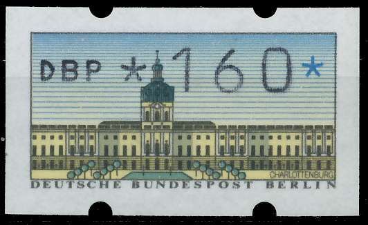 BERLIN AUTOMATENMARKEN Nr ATM 1-160 postfrisch 160 Pfg Wert aus der ATM-Ausgabe von 1987 1.25€ incl. MwSt: Differenzbesteuert zzgl. Versandkosten Bestell-Nr.: S4BD3E6 Katalog-Nr: MICHEL (ATM 1-160) Katalogpreis: 3,44 EUR Qualität: Normal Erhaltung: Postfrisch ** Einheit: Einzelmarke Einzelstück
