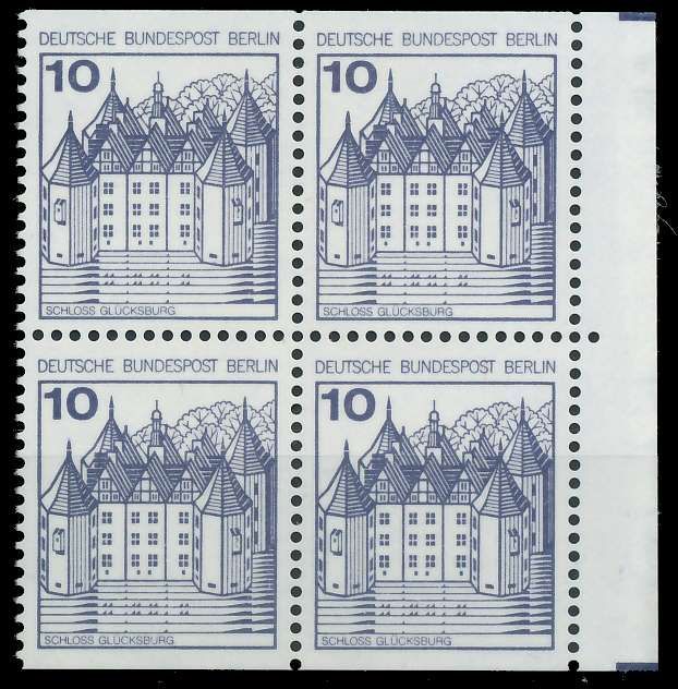 BERLIN DS BURGEN U. SCHLÖSSER Nr 532C D ge postfrisch V 010 Pfg Wert aus der Berlin-Dauerserienausgabe Burgen und Schlösser, oben und unten geschnitten aus Markenheftchen als 4-er Block , gelbliche Fluoreszenz (MichelNr.: 532C D) 0.55€ incl. MwSt: Differenzbesteuert zzgl. Versandkosten Bestell-