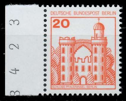 BERLIN DS BURGEN U. SCHLÖSSER Nr 533 SRli postfrisch SR 020 Pfg Wert aus der Ausgabe Burgen und Schlösser, Seitenrand links 0.55€ incl. MwSt: Differenzbesteuert zzgl. Versandkosten Bestell-Nr.: 7EF83E Katalog-Nr: MICHEL (533 SRli) Katalogpreis: 0,5 EUR Qualität: Normal Erhaltung: Postfrisch **
