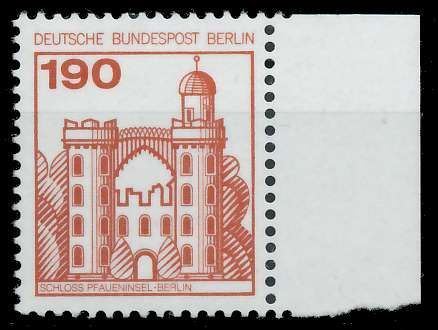 BERLIN DS BURGEN U. SCHLÖSSER Nr 539 SRre postfrisch SR 190 Pfg Wert aus der Ausgabe Burgen und Schlösser, Seitenrand rechts 0.87€ incl. MwSt: Differenzbesteuert zzgl. Versandkosten Bestell-Nr.: 7F48BE Katalog-Nr: MICHEL (539 SRre) Katalogpreis: 2,25 EUR Qualität: Normal Erhaltung: Postfrisch *