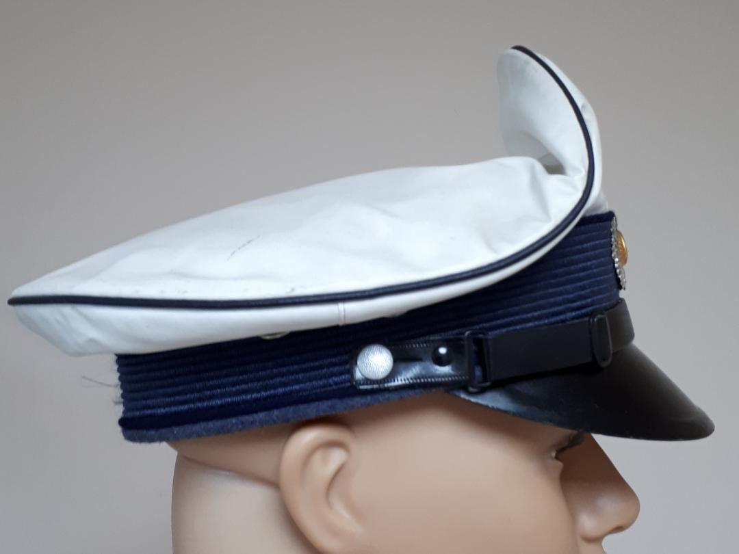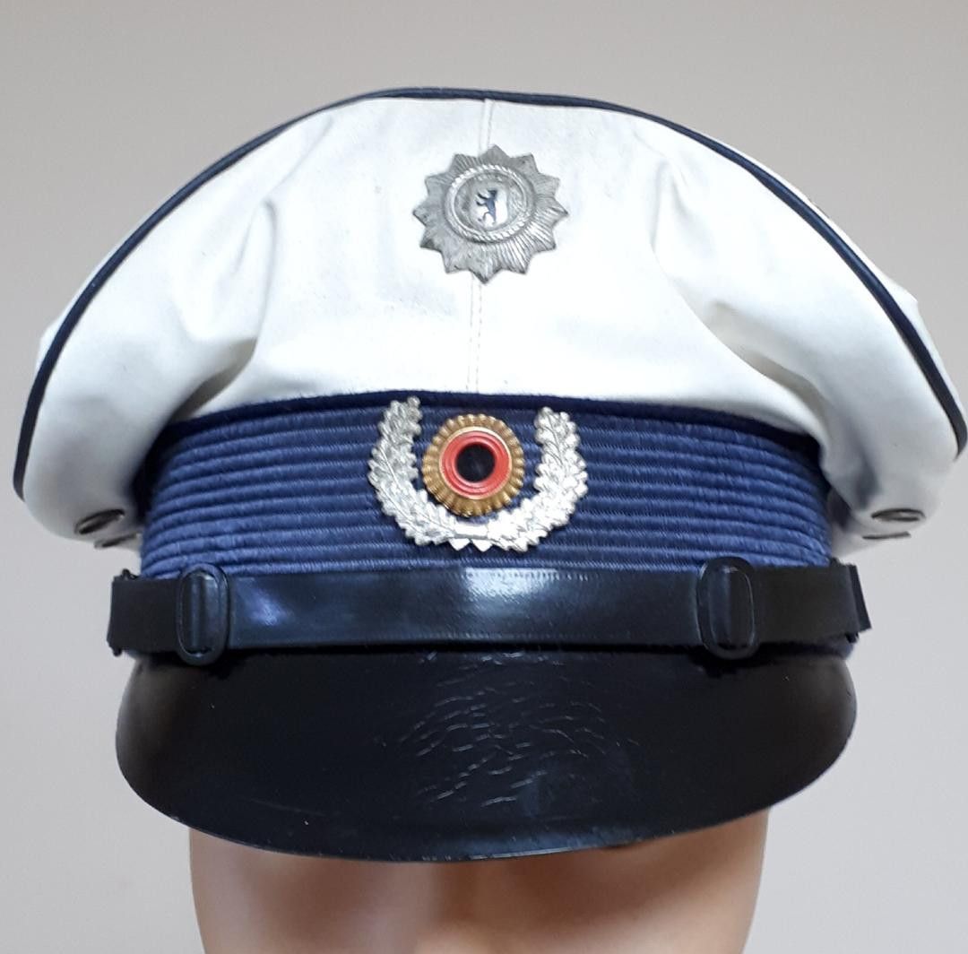 Berlin Polizei Schirmmütze Gr. 56 K.W.1 * Größe: 56 Zustand: gut - gebraucht mit kleinen Gebrauchsspuren (Kunstleder weist einige Verschmutzungen auf) Abbildung ist beispielhaft, Abweichungen können vorkommen!