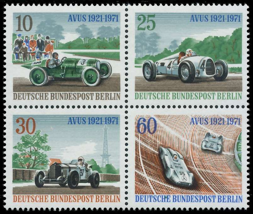 BERLIN ZUSAMMENDRUCK Nr B3 Zd5 postfrisch VIERERBLOCK Herzstück aus der Blockausgabe 50 Jahre AVUS-Rennen (MichelNr.: 1035, 397, 398, 399, 400) 0.71€ incl. MwSt: Differenzbesteuert zzgl. Versandkosten Bestell-Nr.: 7F4D12 Katalog-Nr: MICHEL (B3 Zd5) Katalogpreis: 2 EUR Qualität: Normal Erhaltung