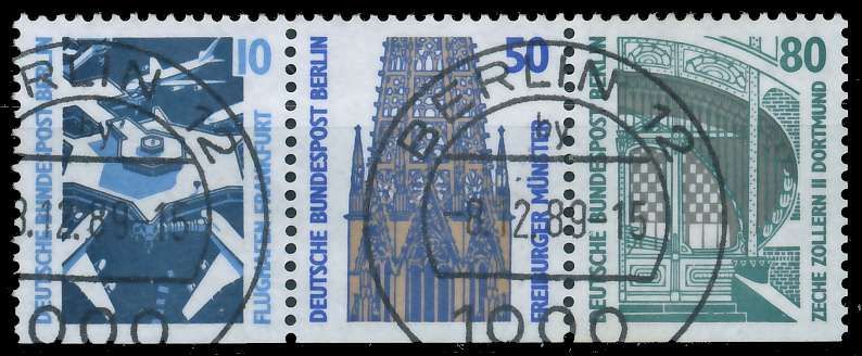 BERLIN ZUSAMMENDRUCK Nr W86 zentrisch gestempelt 3ER STR 10+50+80 unten geschnitten aus den Zusammendrucken Sehenswürdigkeiten Berlin (MichelNr.: 1131086, 794D, 796D, 798D) 21.61€ incl. MwSt: Differenzbesteuert zzgl. Versandkosten Bestell-Nr.: 7F4F56 Katalog-Nr: MICHEL (W86) Katalogpreis: 40 EU