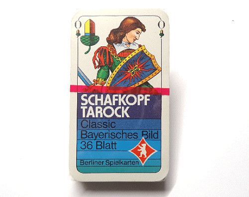 BERLINER SPIELKARTEN Kartenspiel SCHAFKOPF TAROCK Bayerisches Bild - Classic 36 Blatt Originalverschweißt Kartengröße: 100 x 56 mm Rückseite mit schwarz-weißem Karomuster Kunststoffschachtel +++ NEUWARE +++