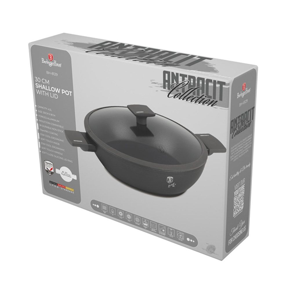 Berlinger Haus Antracit Collection Flacher Topf mit Deckel, Ø 30 cm