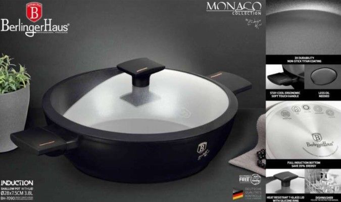 Berlinger Haus BH-7090 Niedrige Stielkasserolle mit Deckel, 28 cm, Monaco CollectionF