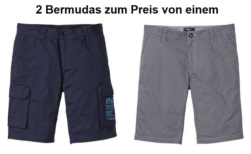 Bermuda Herren Gr. 62, 2 stück bonprix collection Freizeitshorts. Neu mit Etikett Marke:bpc: bonprix collection M6°3018 & M8°2560 Farbe: dunkelblau & grau gemustert Größe: 62 Innenbeinlänge: 42 cm / 27 cm Material: 98% Baumwolle, 2% Elasthan / 100% Baumwolle. Renommierter Hersteller und Versandhäuser zu sensationellen Preisen Versandkosten : versichert: 6,90 € / Abholung 0 €
