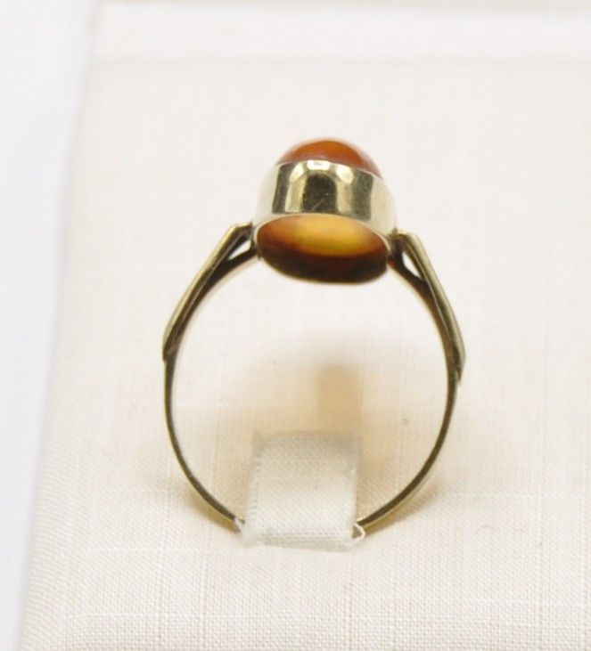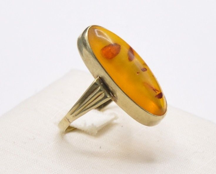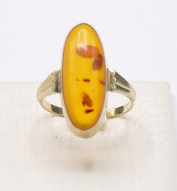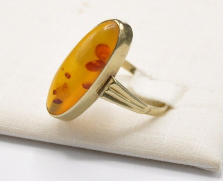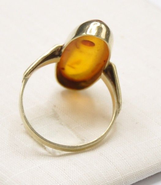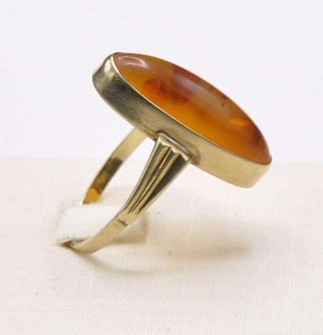 Bernstein Amber Schiffchen Solitär Ring groß 585 Gold Vintage